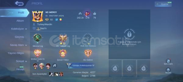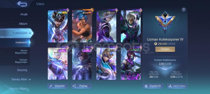 hesapta toplam 130 kıyafet bulunmaktadır-yaklaşık 50 emoji bulunmaktadır-birbirinden farklı efsanevi efektler ve avatar çerçeveleri bulunmaktadır-50'den fazla emoji -3 kere mistik ligine ulaşmıştır-daha fazla bilgi için dm