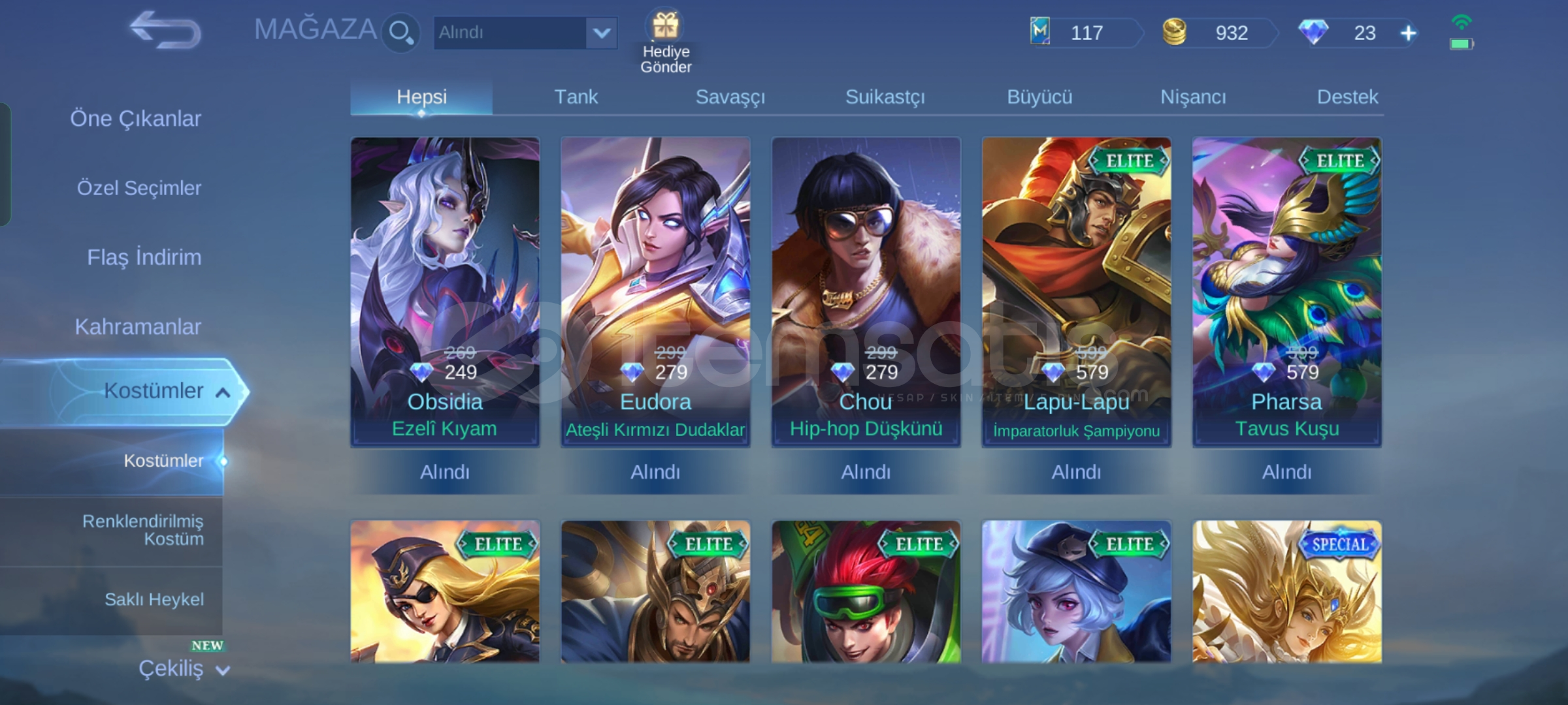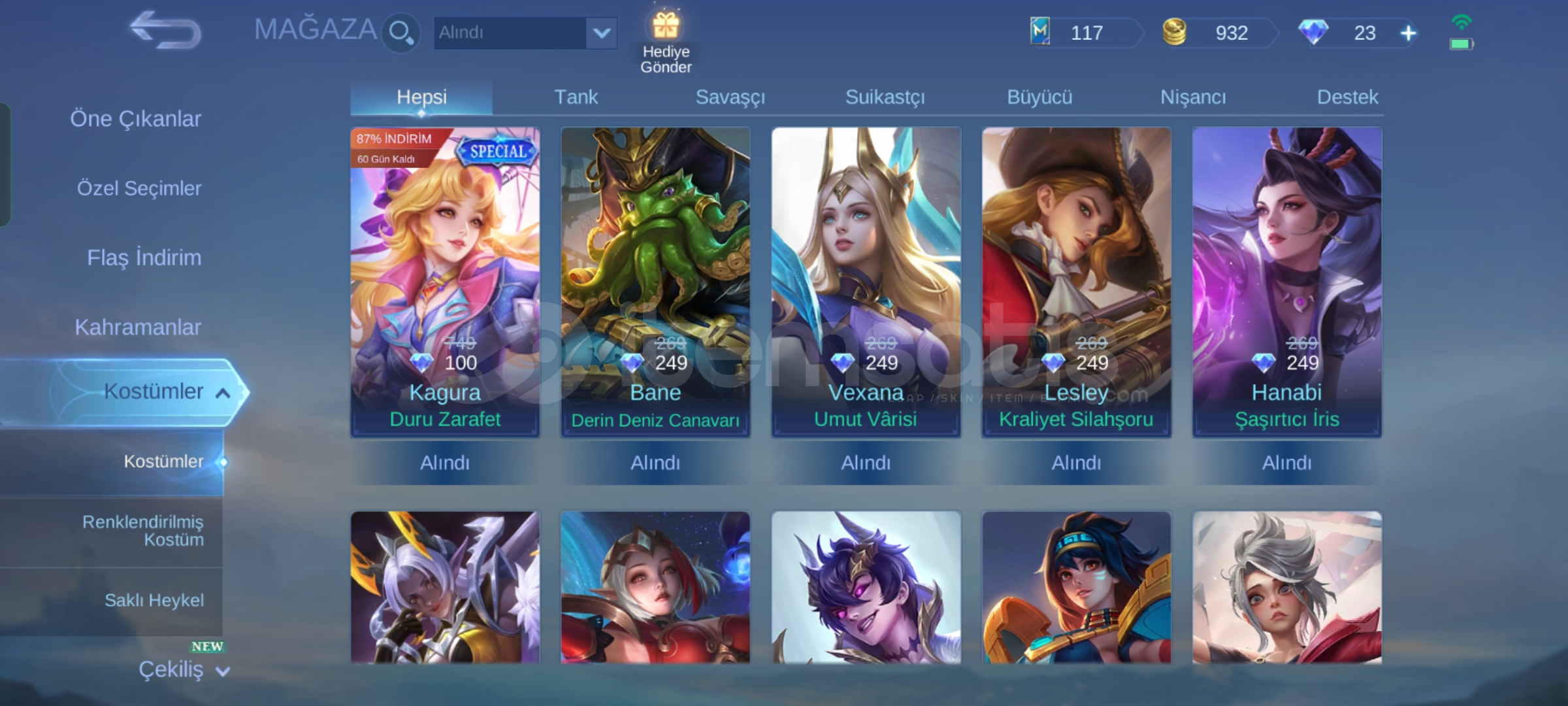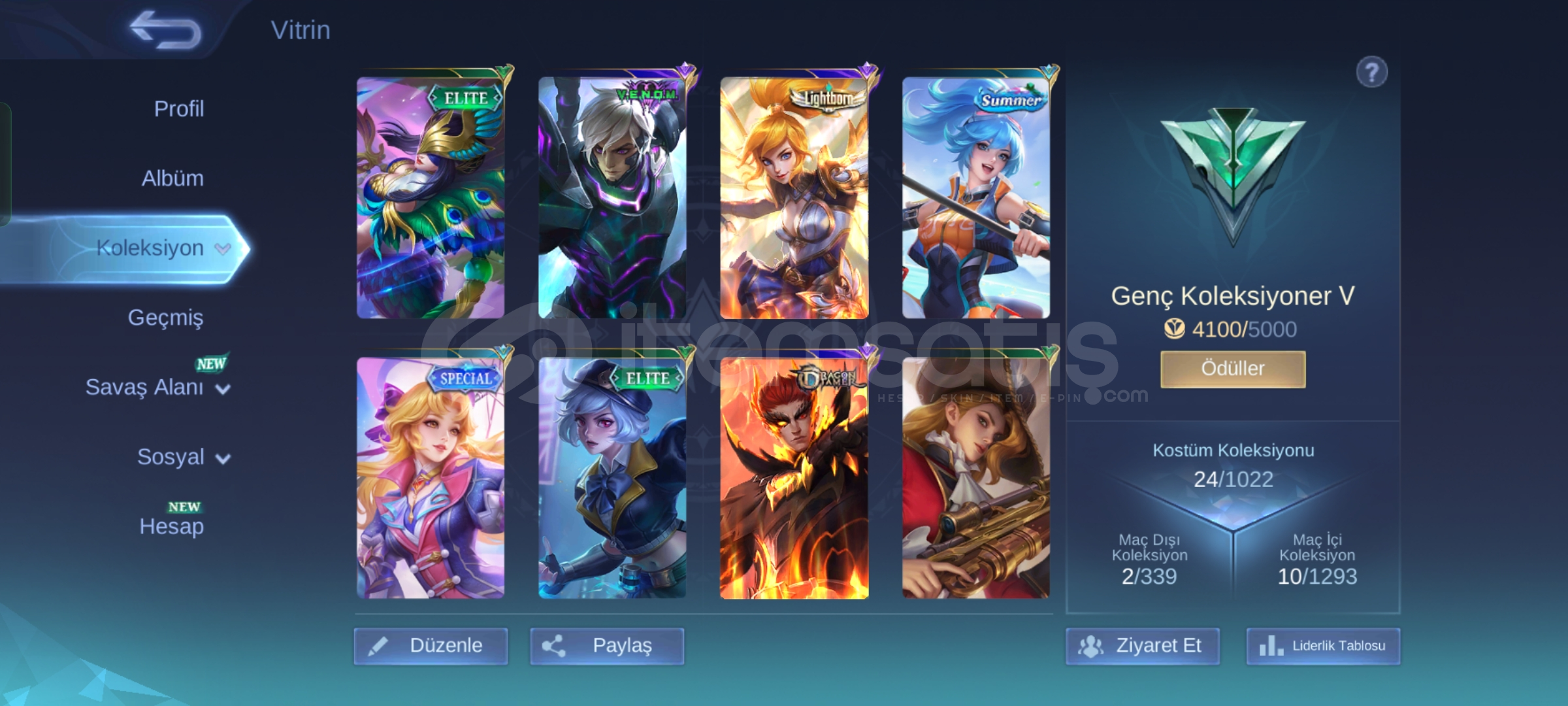 Kostümleri ve hesaptaki kahramanları, amblemleri, seviyeleri fotoğraflardan görebilirsiniz.