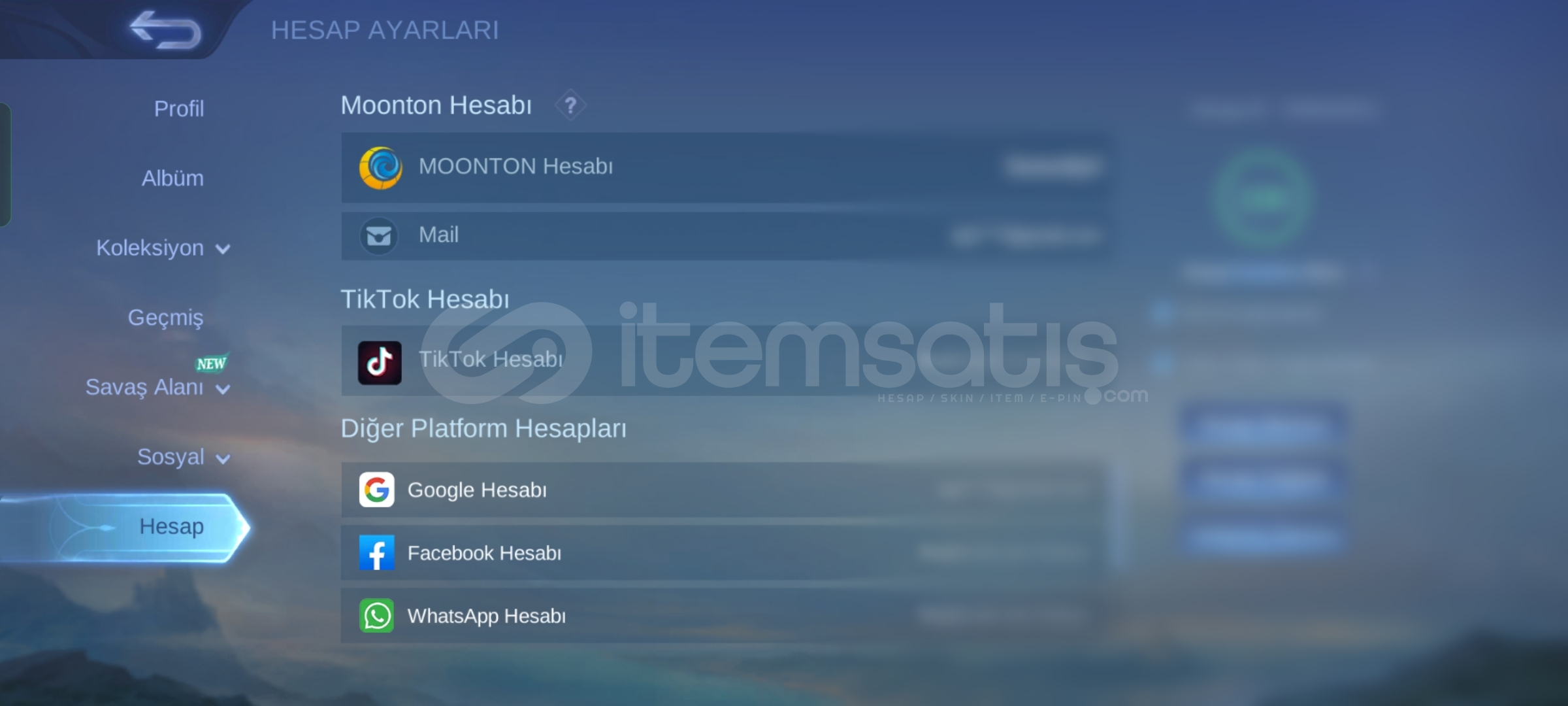 Öncelikle ufak bir bilgi vermek istiyorum. Hesap kurallara uygun bir şekilde oynanmış, çalıntı hesap değildir. Oyunu bıraktığımdan dolayı hesabı almak isteyen kişi iletişime geçebilir. Fiyat teklifi için iletişime geçebilirsiniz. Hesabın tüm bağlantıları (Moonton vb.) sağlanmıştır.