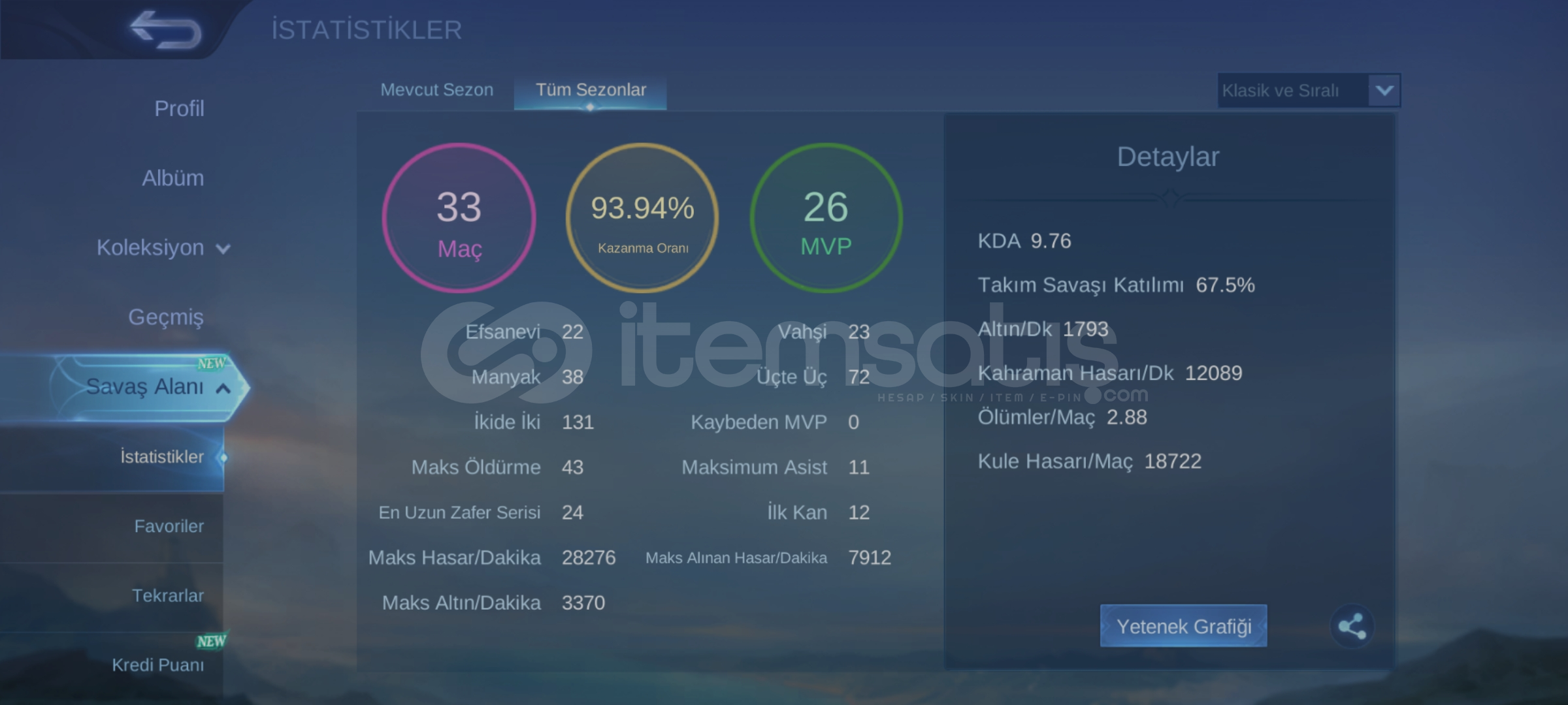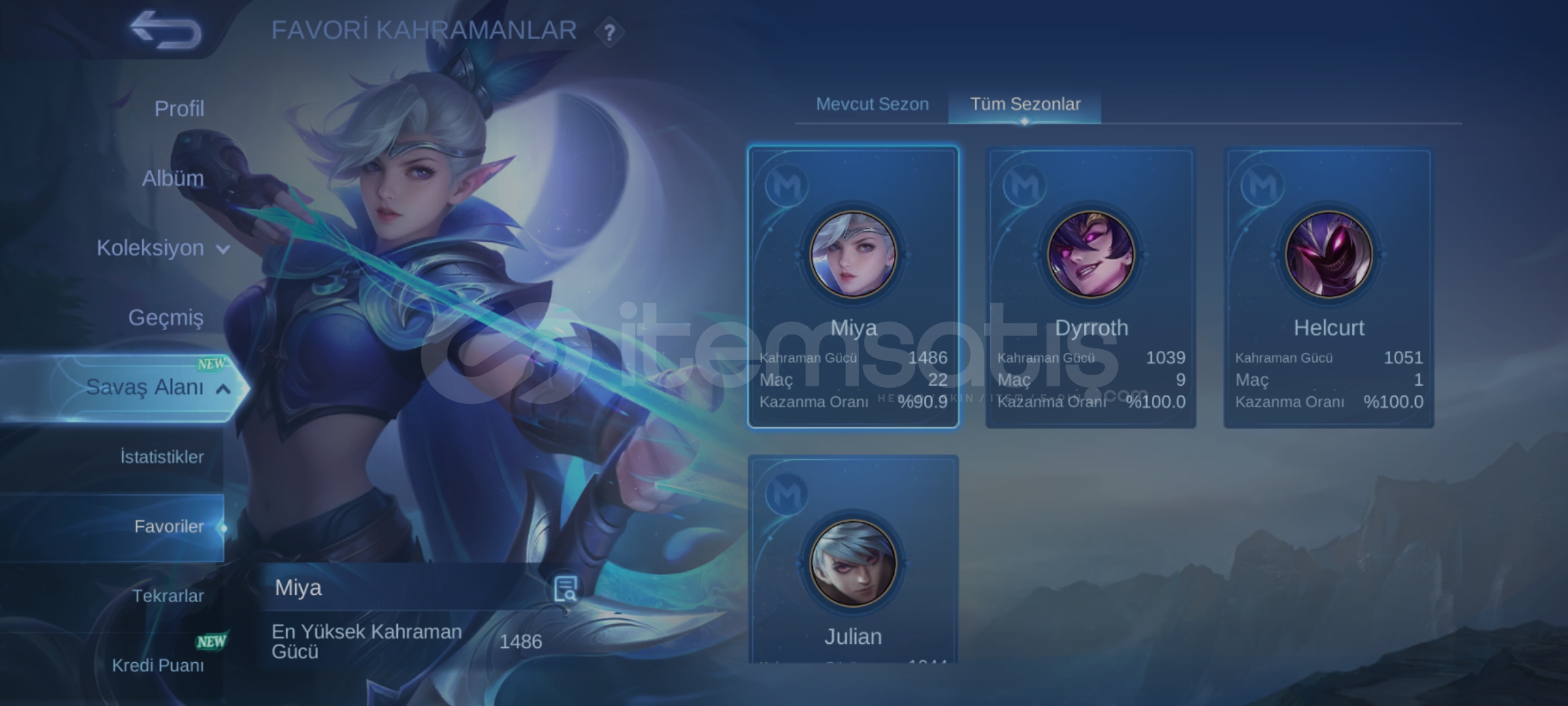 Hesabın içinde feryada dahil olmak üzere 18 karakter ve 4 kostüm var ayrıca 350 tane acemi elması vardır