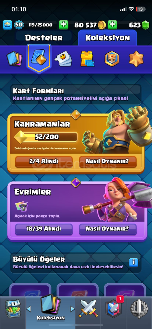 HESAPTA 18 EVRİM 2 KAHRAMAN VE BÜTÜN KARTLAR AÇIKTIR 9900 KUPADIR DETAYLI BİLGİ İÇİN MESAJ YAZABİ...