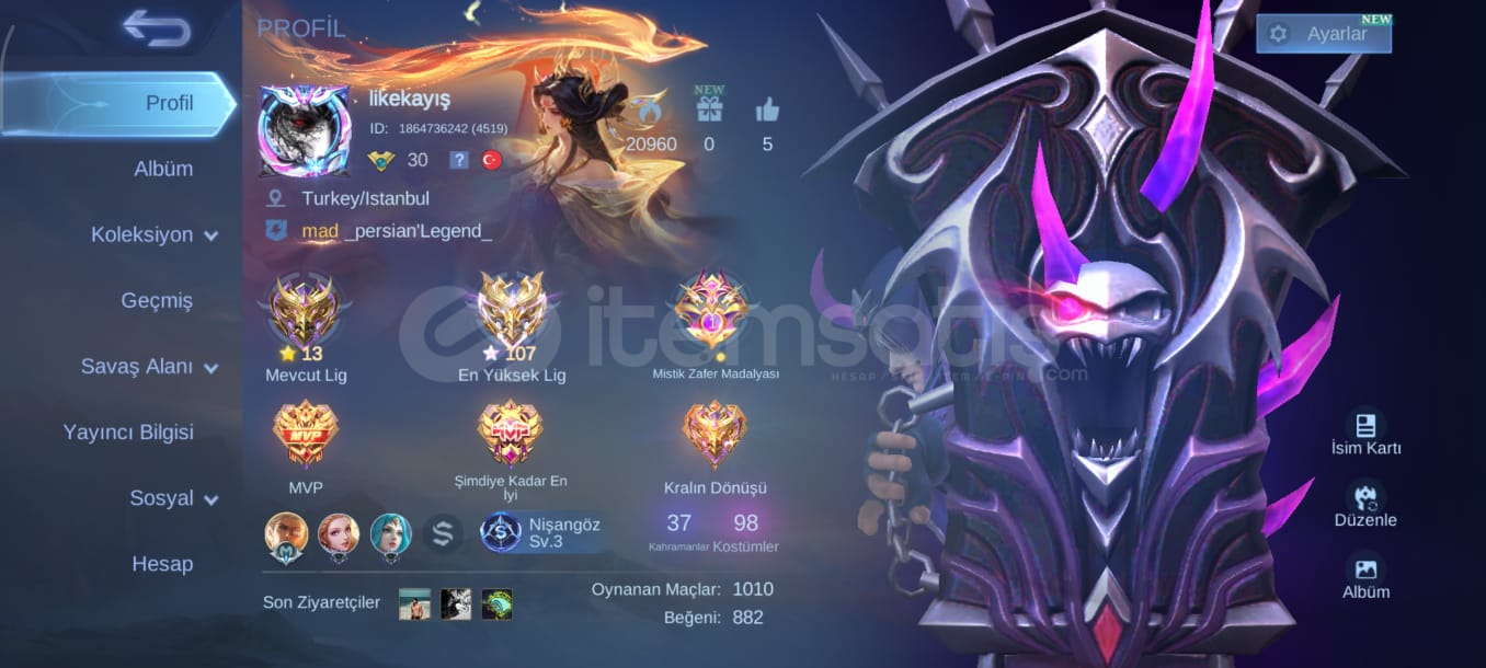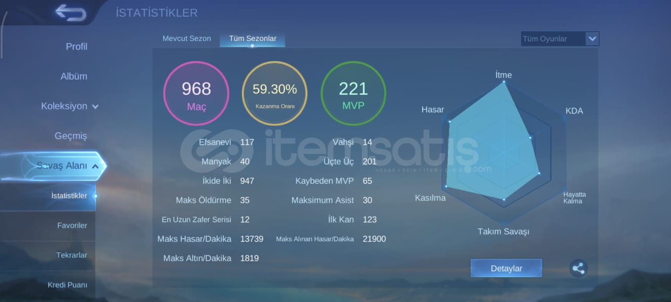 Hesapta 360 elmas vardır Yıldız üyelik kartı 2 tane mevcuttur6 aylık yıldız hesap alınmıştırHesap ADC mainli bi hesaptır