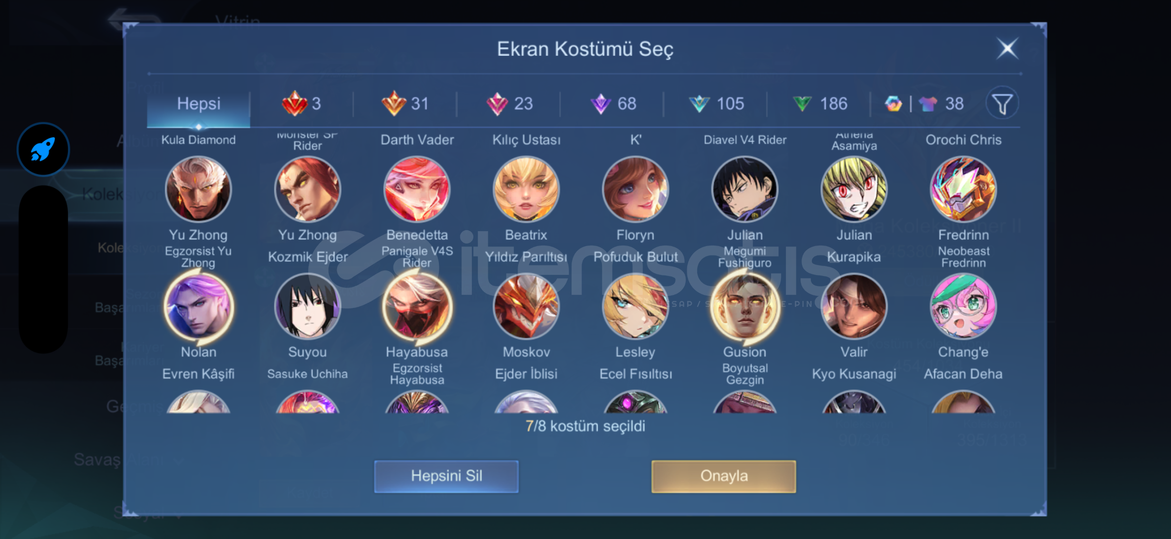 Tüm karakterler açık, bol etkinlik kostümlü, bol efektli fırsat hesabı. Mega 1 seviye olmak üzere. Kostümlerin hepsinin fotoğrafı sınırdan dolayı eklenememiştir. Hafif pazarlık payı vardır. Alıcısına hayırlı olsun.