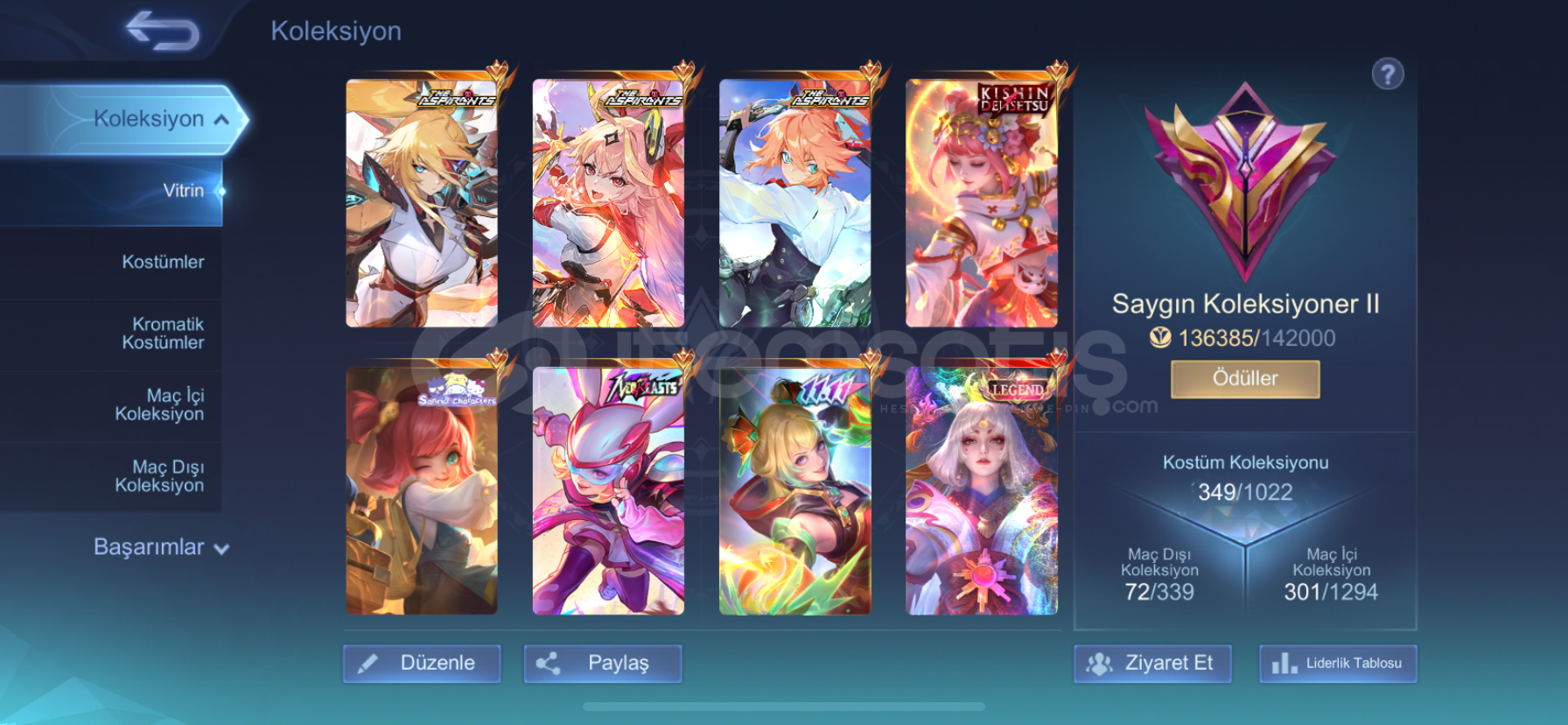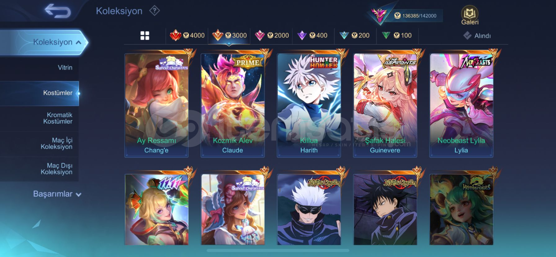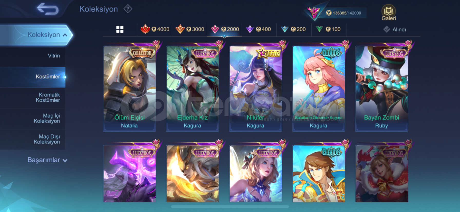 349 kostüm, oransız, kagura exo hariç full, lunox yeni gelen mpl ve star hariç full, lylia halloween hariç full, xavi f...
