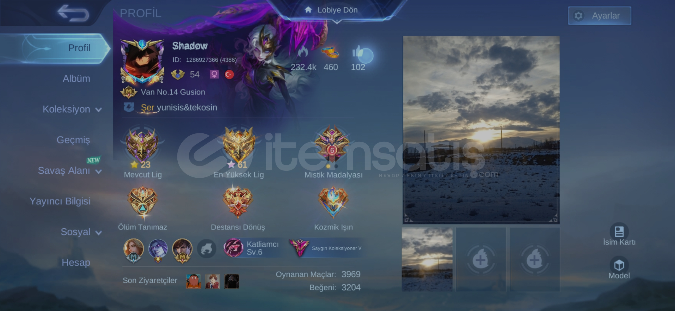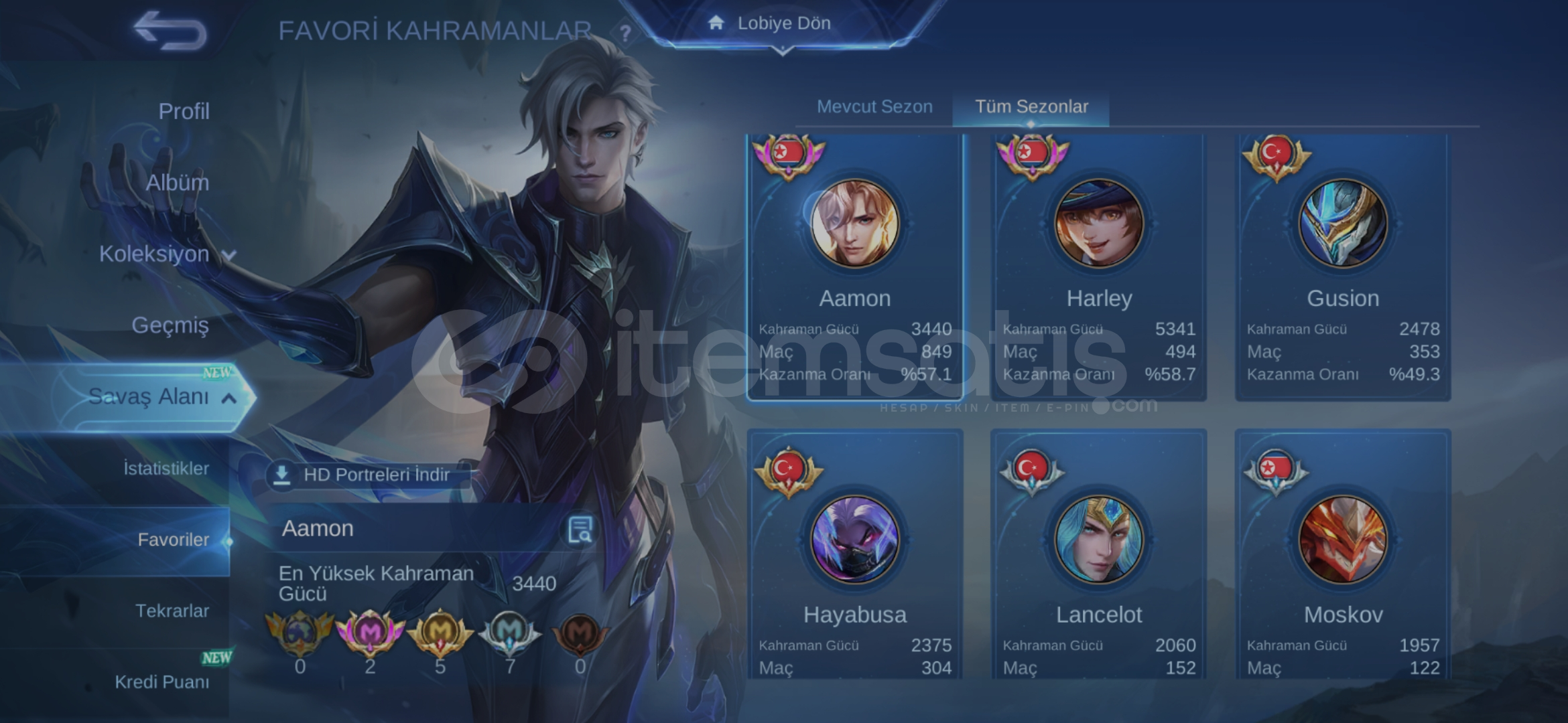 SAYGIN KOLEKSİYON HESAP AMA BU FİYATA;GUSİON LEGENDS ASPİRANT CHANG VE VEXANA 11.11 HAYABUSA SANRİYO CLADUE VE FLORYN MOSKOV EJDER İBLİSİ KOF AURORU VE KARİNA -NADİR BULUNAN ALUCARD ZİLONG VE HAYABUSA LUCKBOX, FANNY VALENTİNA ŞANSLİ ALTIN YUMURTA BASE EFEKTİ ELLİ 55 GÜNLÜK HAFTALIK GEÇİŞ+140ELMAS (YAKLAŞIK 1 K ELMAS) YÜKSEK RANK VE KARAKTER MMR ORANİ VE WİN RATE ORANI BU...