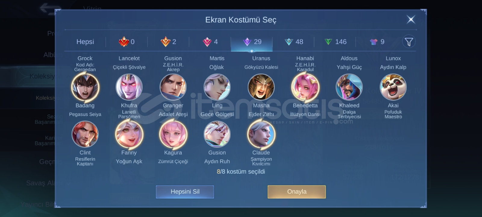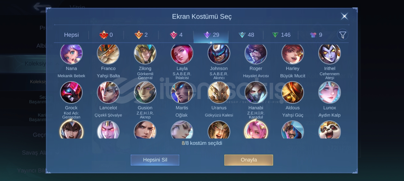 Kardeşim bu oyun bana çok zaman kaybettirdi, kostüm falan umrumda değil, oyunu bırakıyorum, sana yemin ederim geri çekme diye bişe varmış öyle birşey asla yapmam, tek bağ, bak oranına incele al geç tepe tepe kullan ne diyim. Heroları da full bu arada.