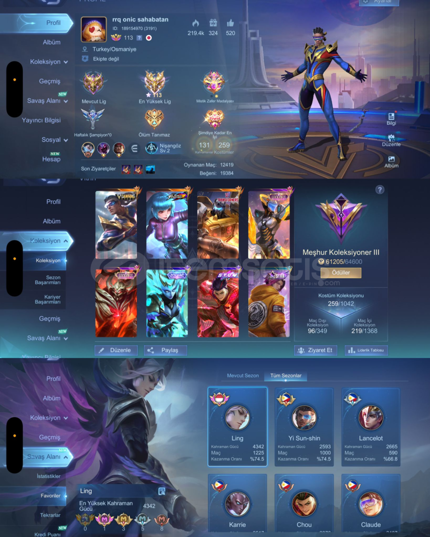 MOBILE LEGENDS HESAP SATICISINDAN