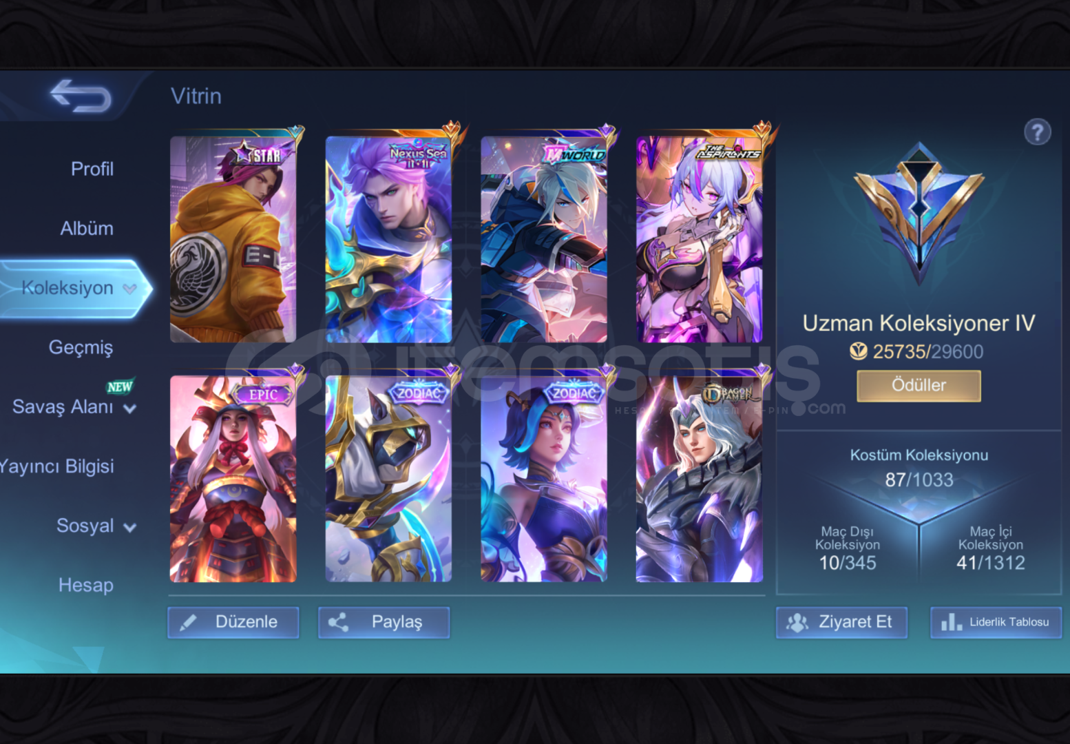 hesap temizdir oyunu bıraktıgım icin elden cıkarıyorum son fiyattırmworld , hergele ve epic ling11.11 nolan ve vesana aspirantzodiac hel ve onun dısında 6-7 epic daha vardırligi büyük ustadır