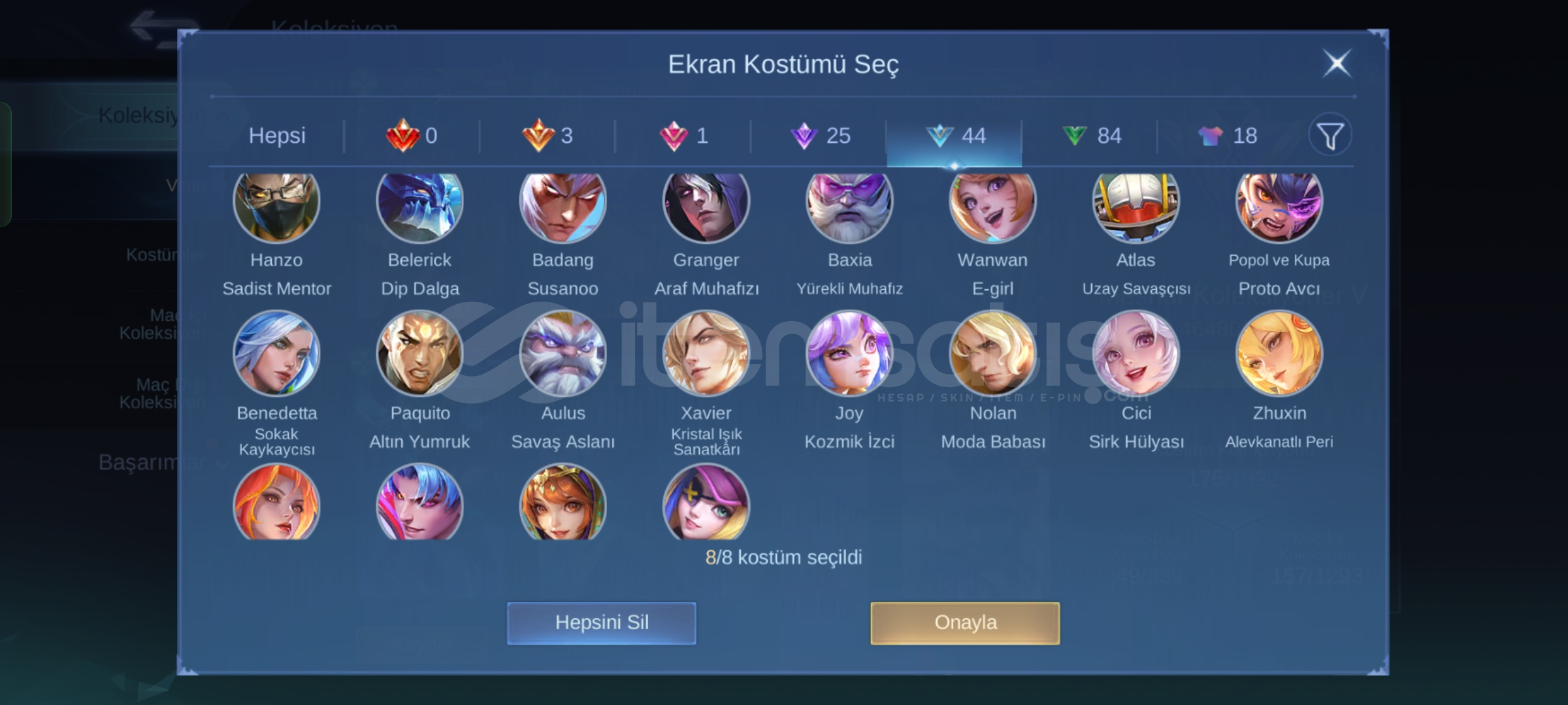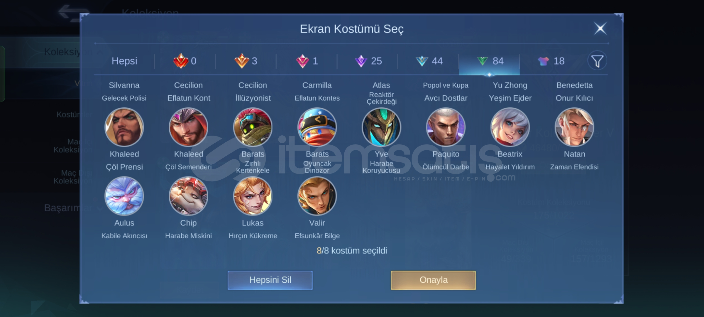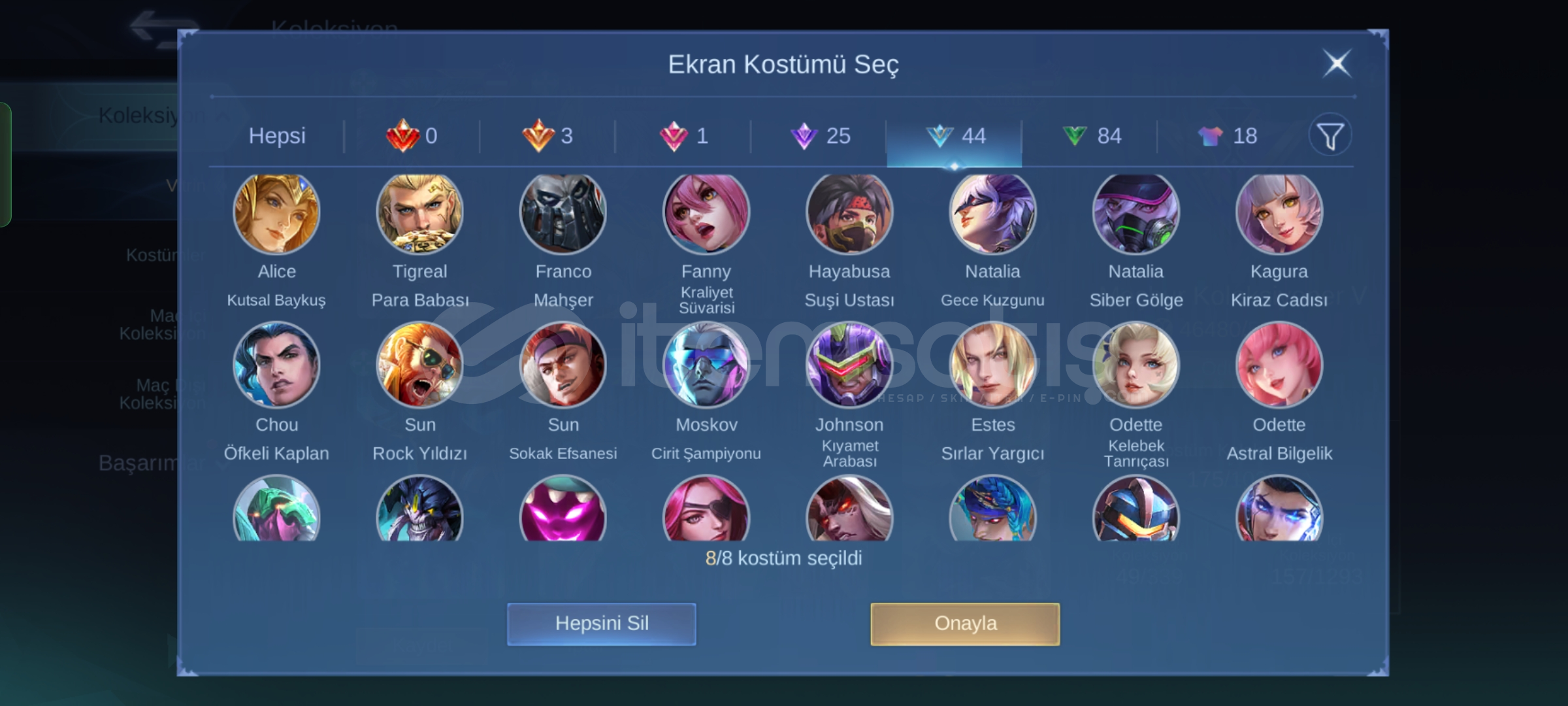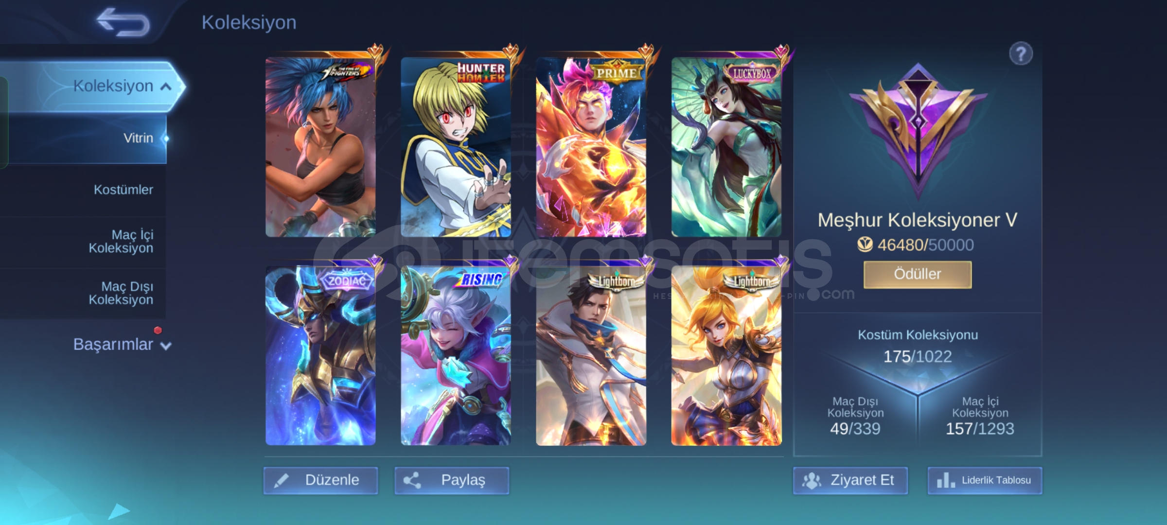 Hesapta 175 kostüm var zodiac martis gibi güzel kostümlerle var amblemler filan nerdeyse full almak isteyen ilk önce yazsın.