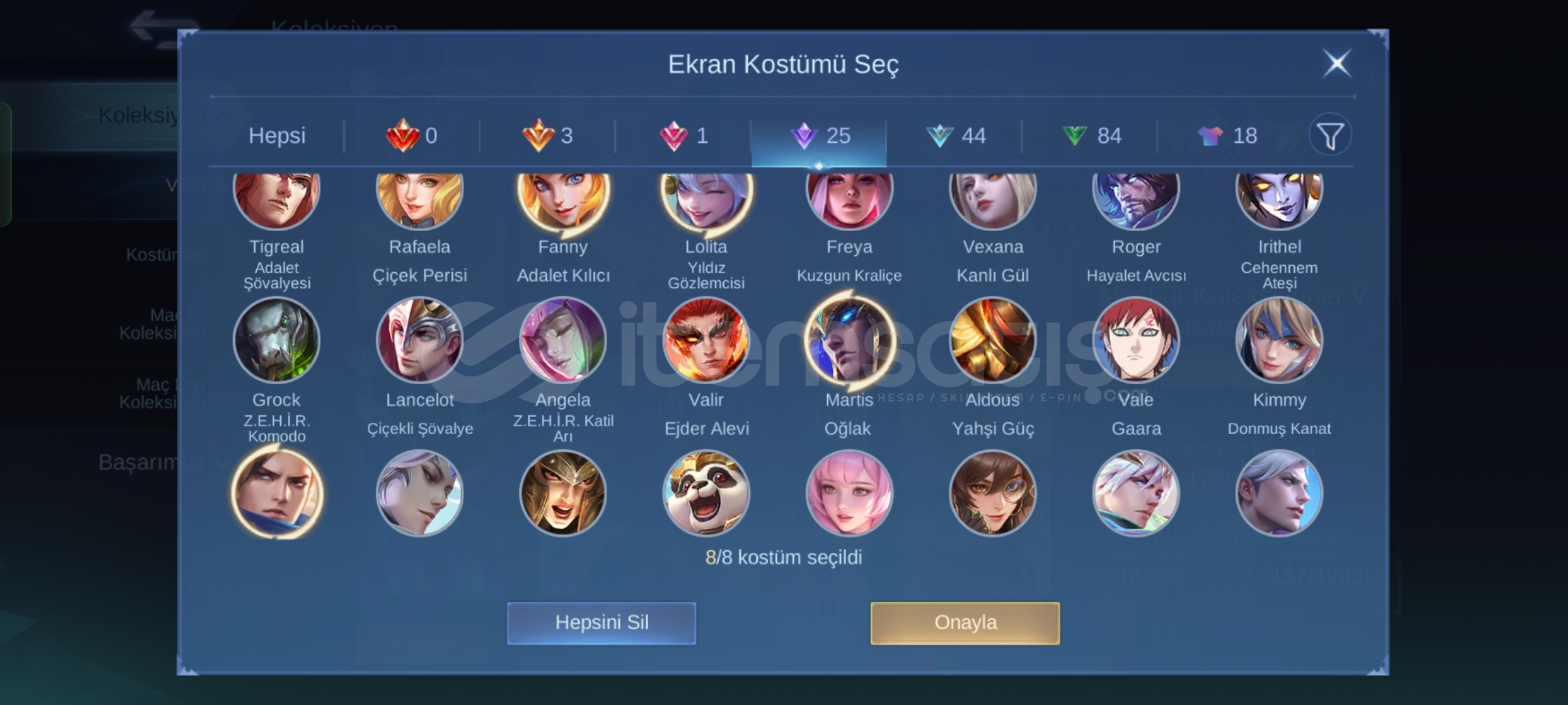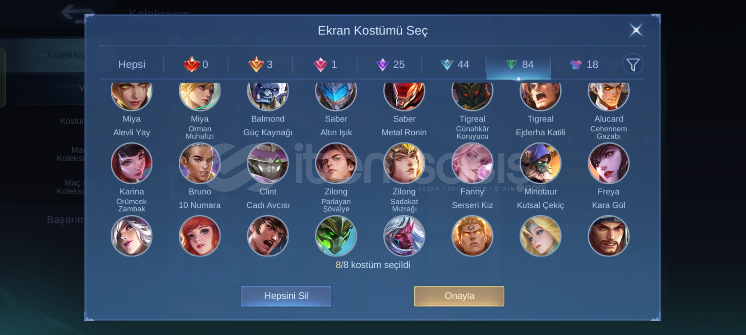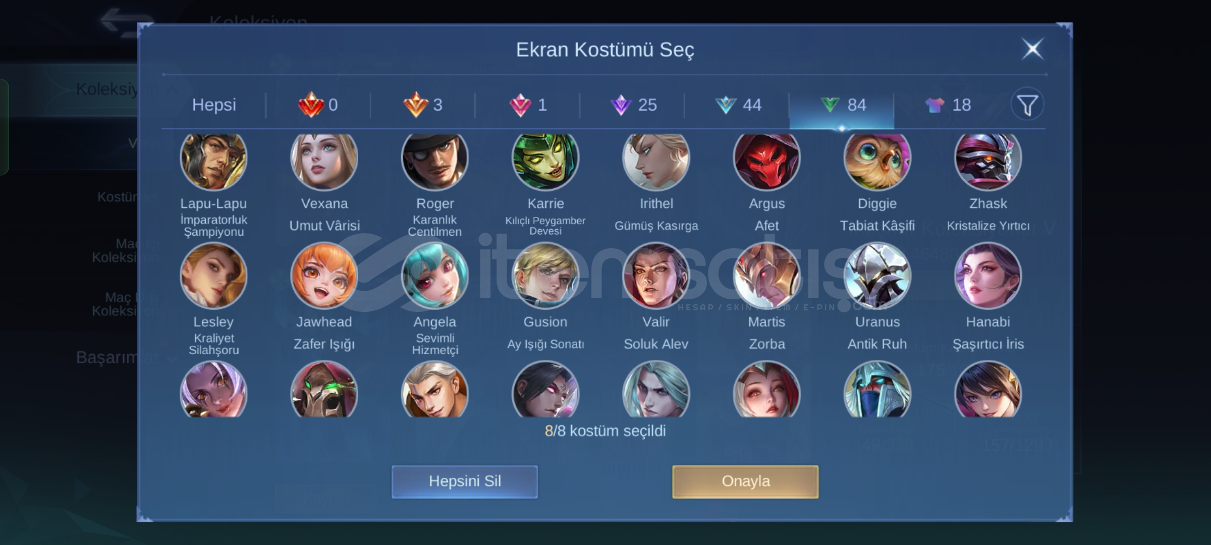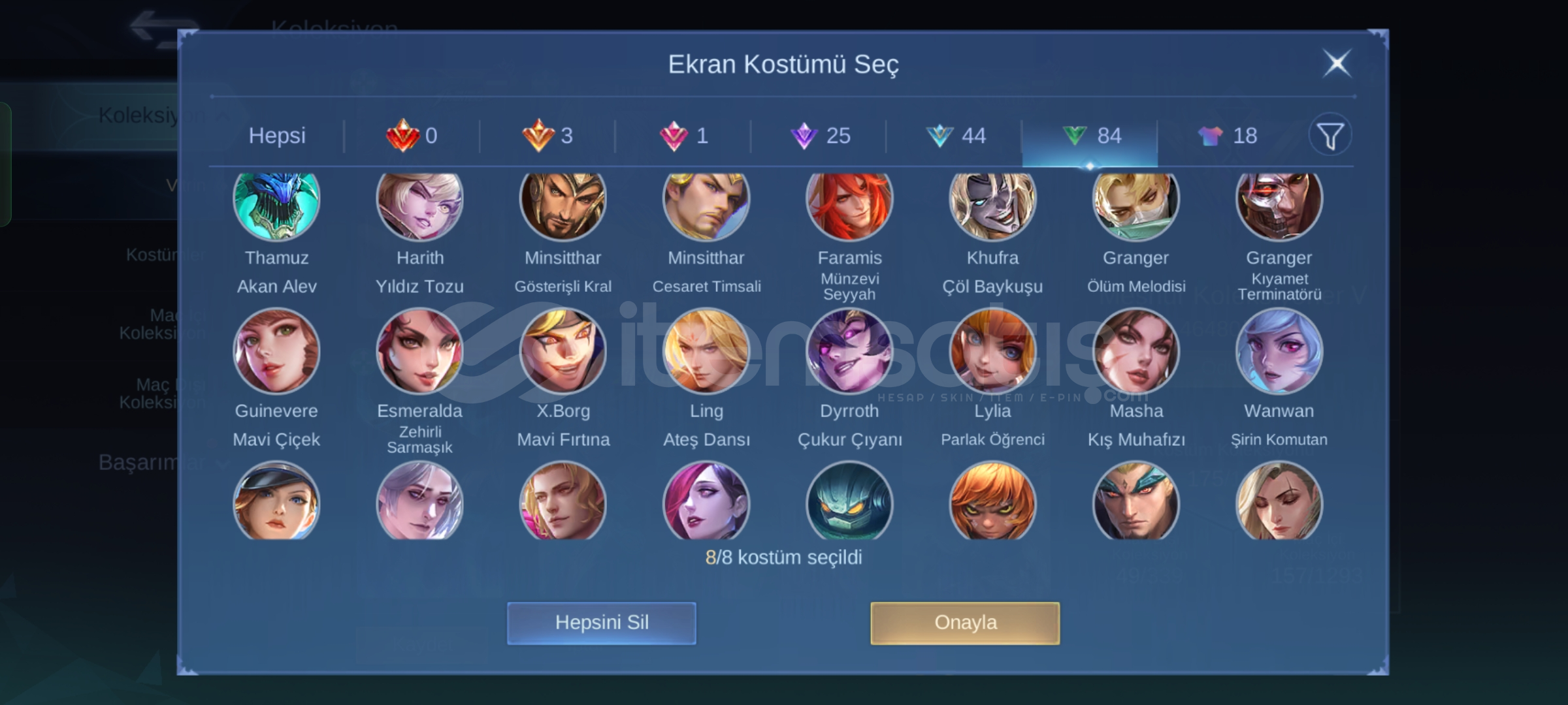 Hesapta 175 kostüm var zodiac martis gibi güzel kostümlerle var amblemler filan nerdeyse full almak isteyen ilk önce yazsın.