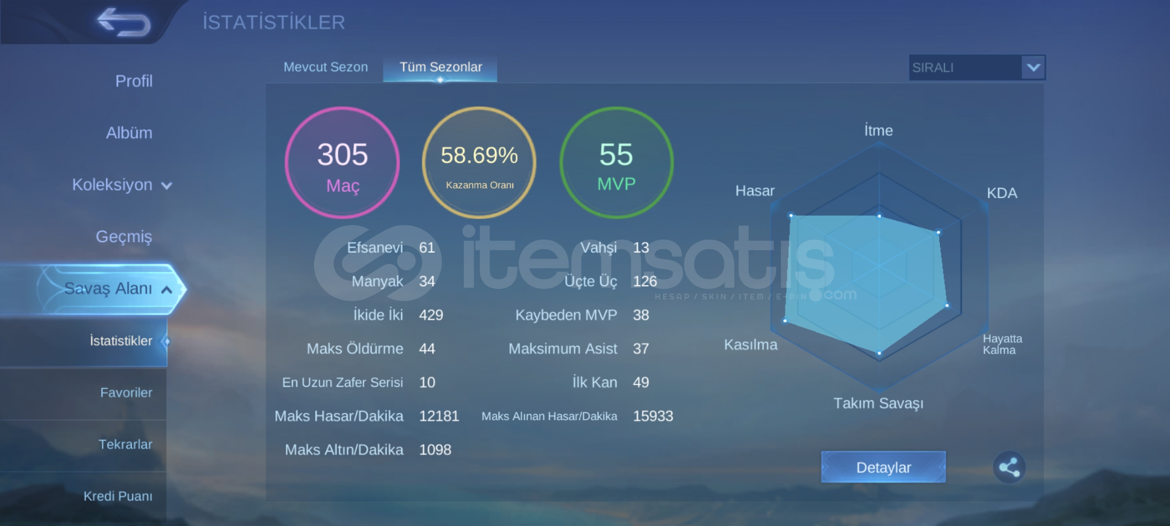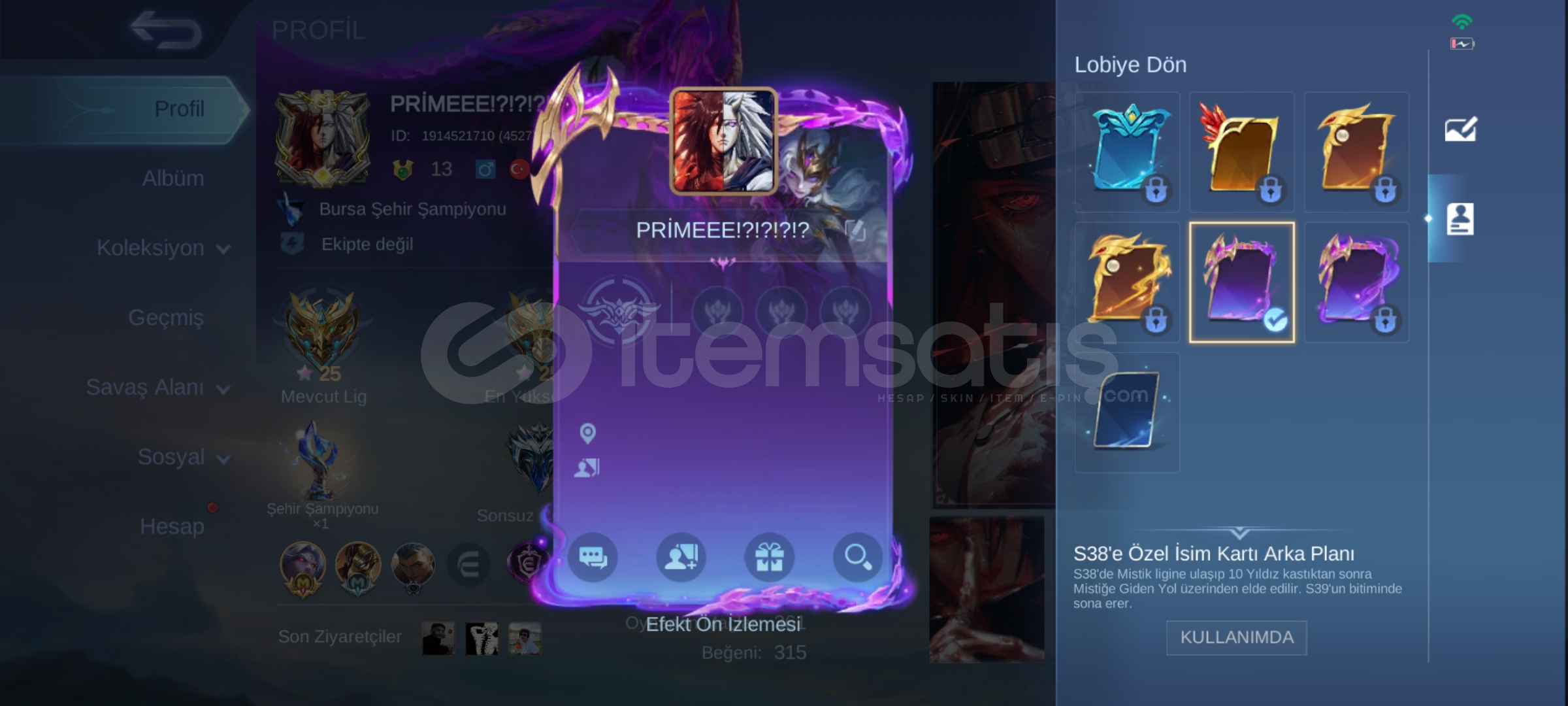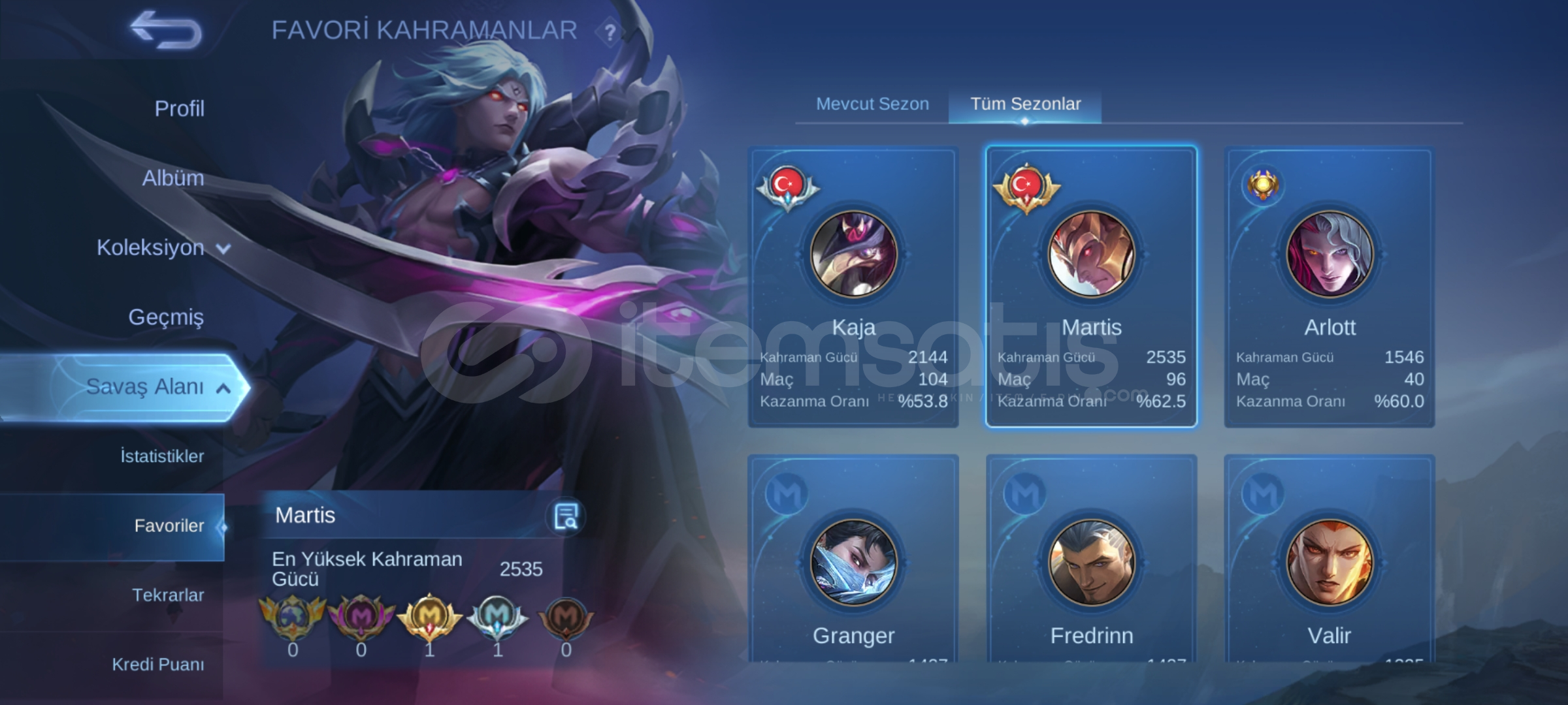 Şanlı mistik martis main 2500 mmr güzel kostümleri olan bir hesap az maçlı bol MVP li bol kill li bir hesap