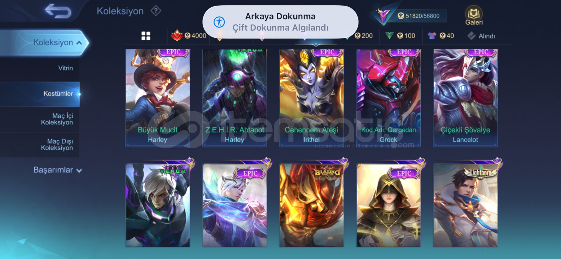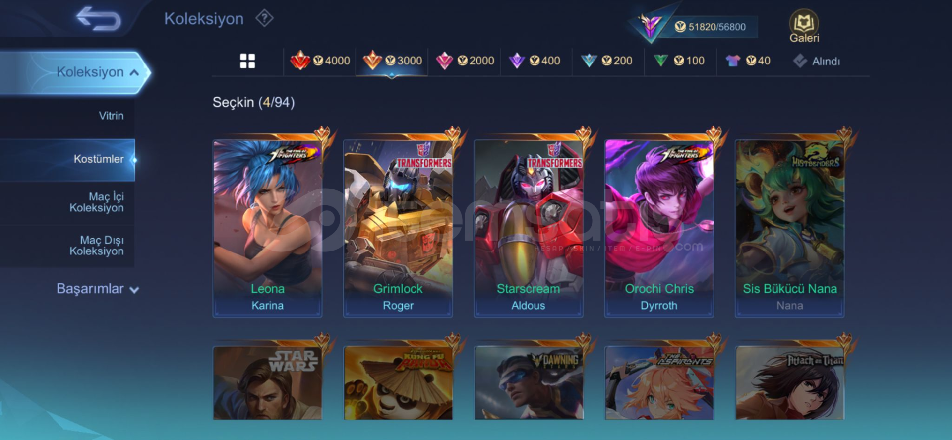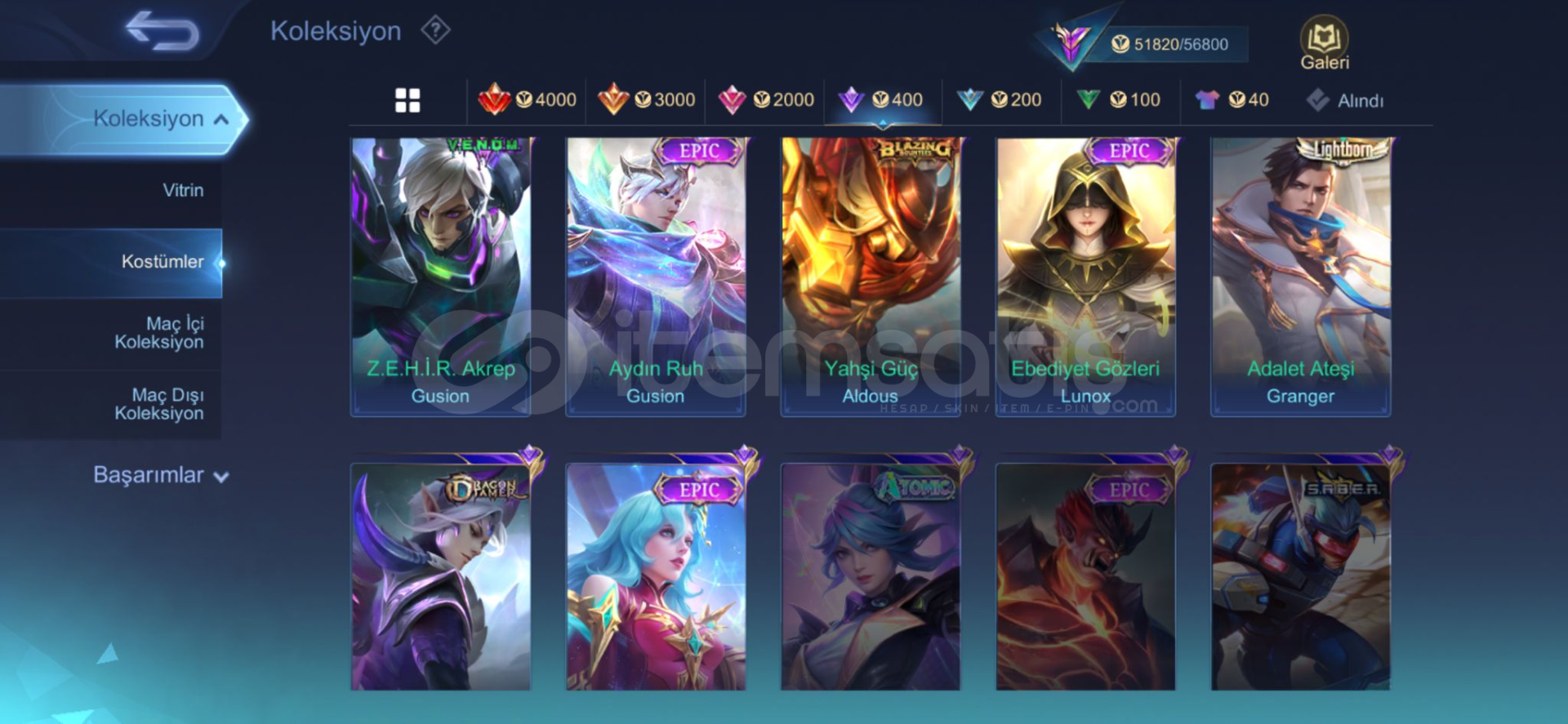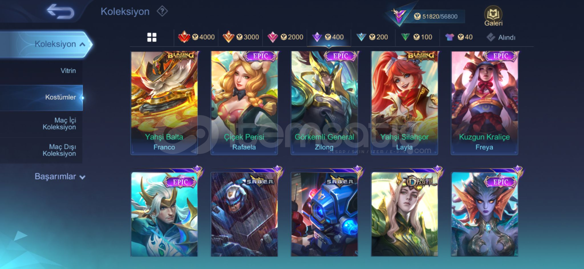 Şanlı mistik 36 maks70 gökyüzü leveli222 köstümamblemler full122 karakter vardır960 maç franco 53 orangus 602 maç 57 oranPAZARLIK PAYI VARDIR