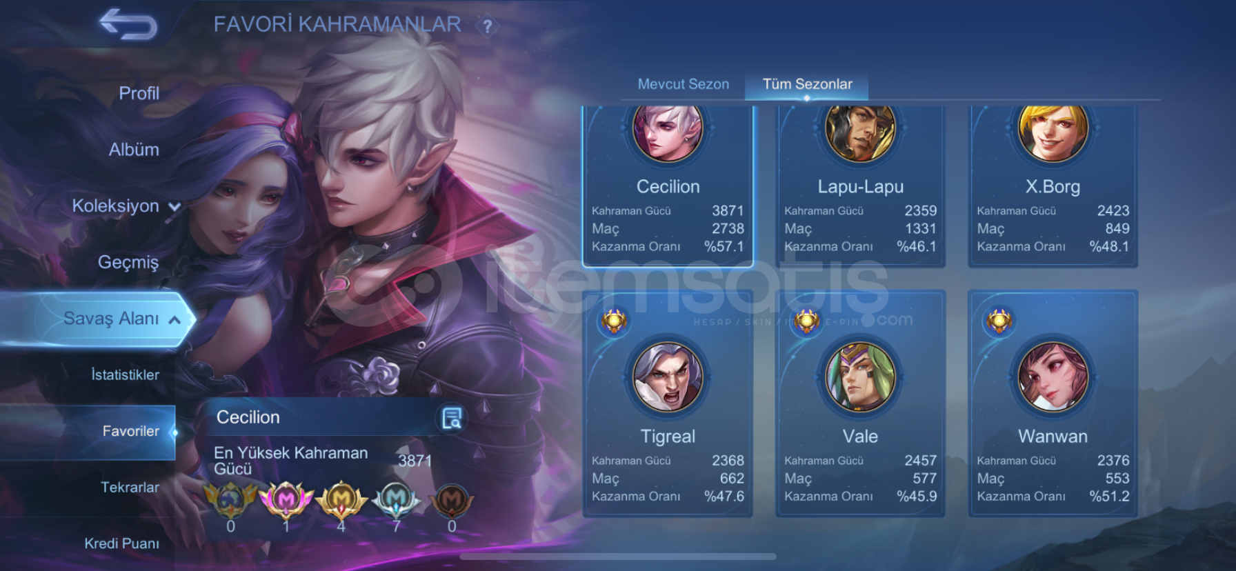 Şanlı mistik 40 maks 87 gökyüzü leveli 256 kostüm amblemler full 119 karakter vardır cecillion 2700 maç 57 oran