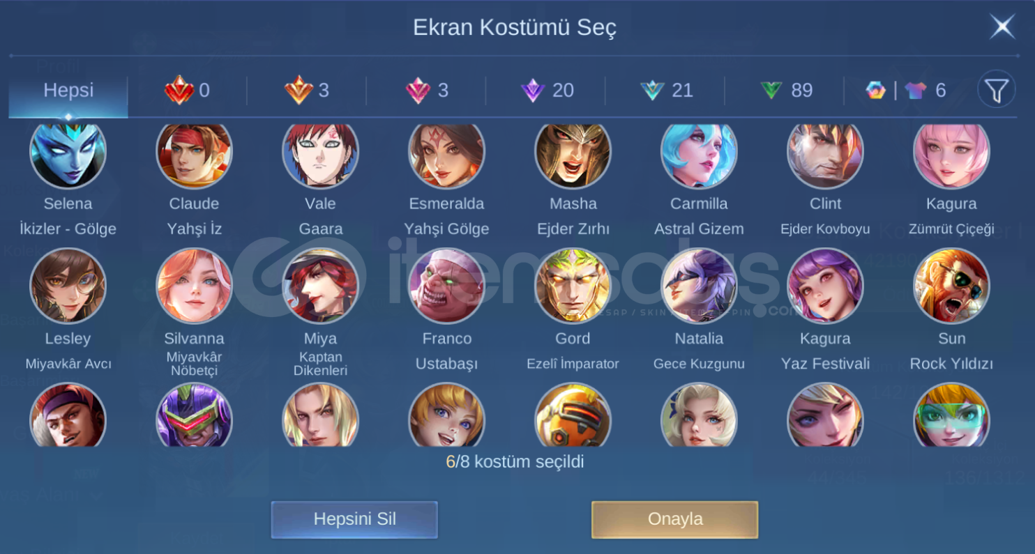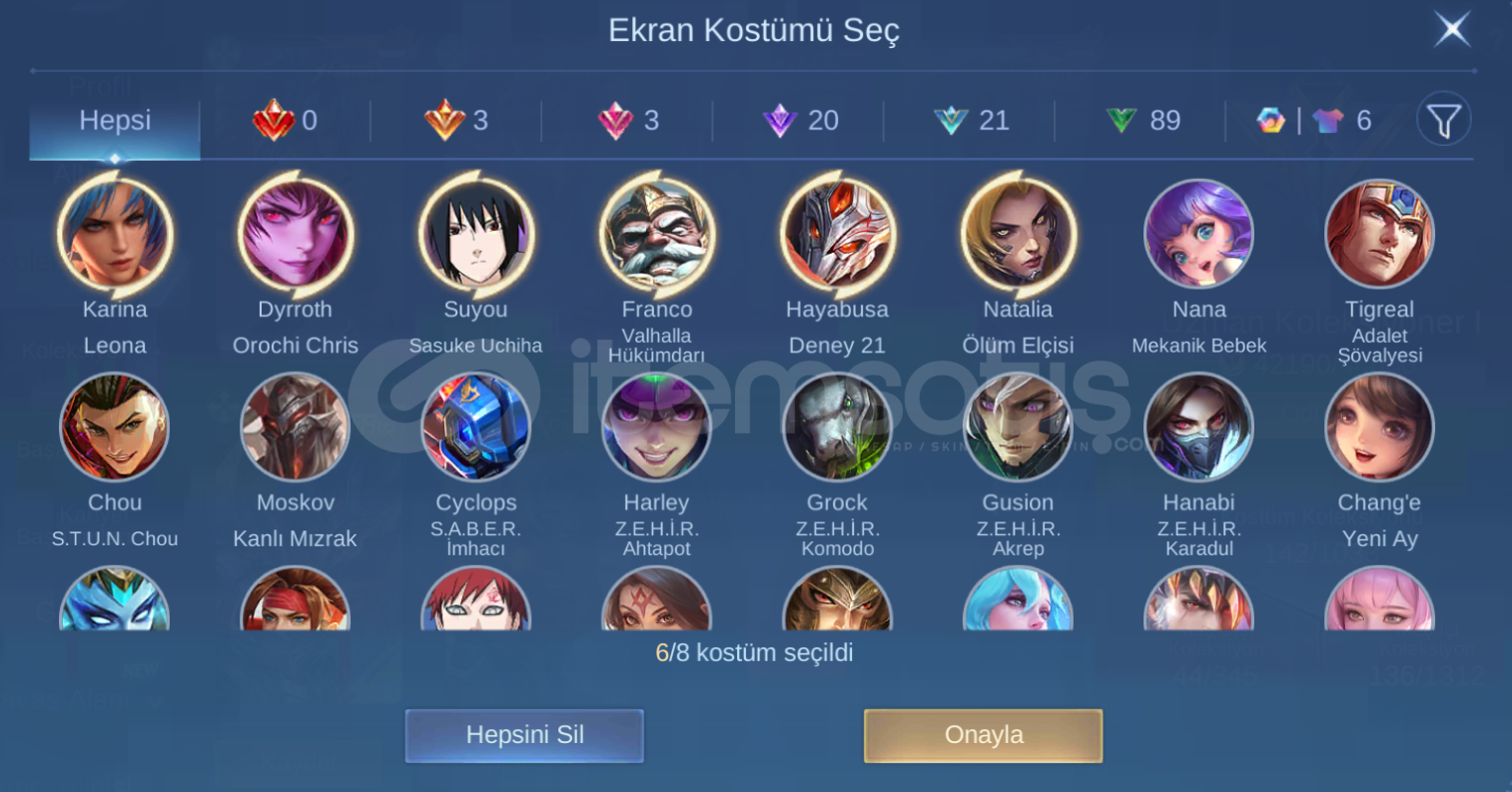 🎭 Hesapta KOF Dyrroth, Sasuke, Sayou gibi sevilen kostümler mevcuttur.