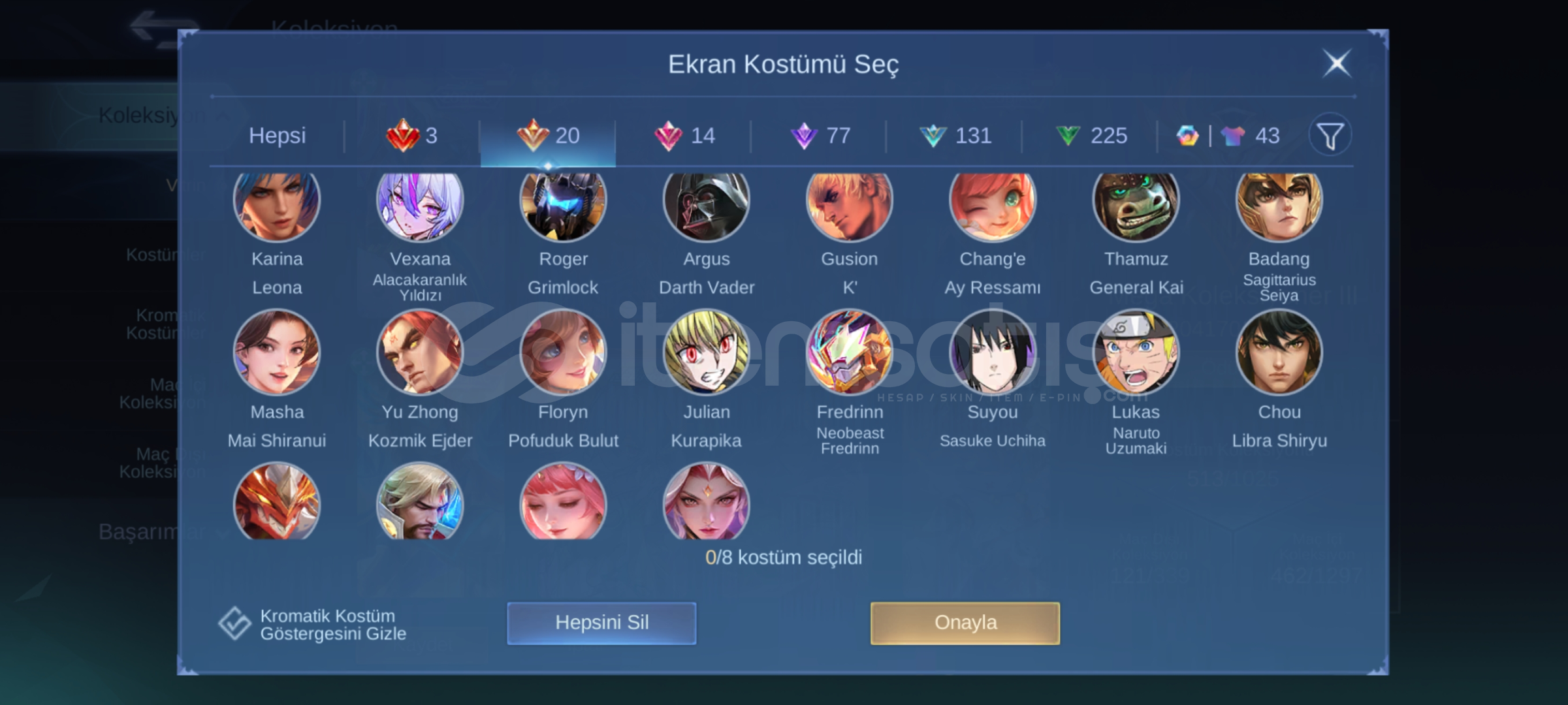 SATILIK GUS KOF VE SUYOU NARUTO, 3 LEGENDLİ, 5 TANE TR TAGI MEVCUT, MAXİ 100 YILDIZ, MEGA KOLEKSİYONER, EPİC BASELİ, BU AY'Kİ YILDIZ ÜYELİK ALINMIŞ, 20 GÜNLÜK GEÇİŞ MEVCUT, BİRÇOK İŞBİRLİĞİ KOSTÜMÜ MEVCUT 🔥