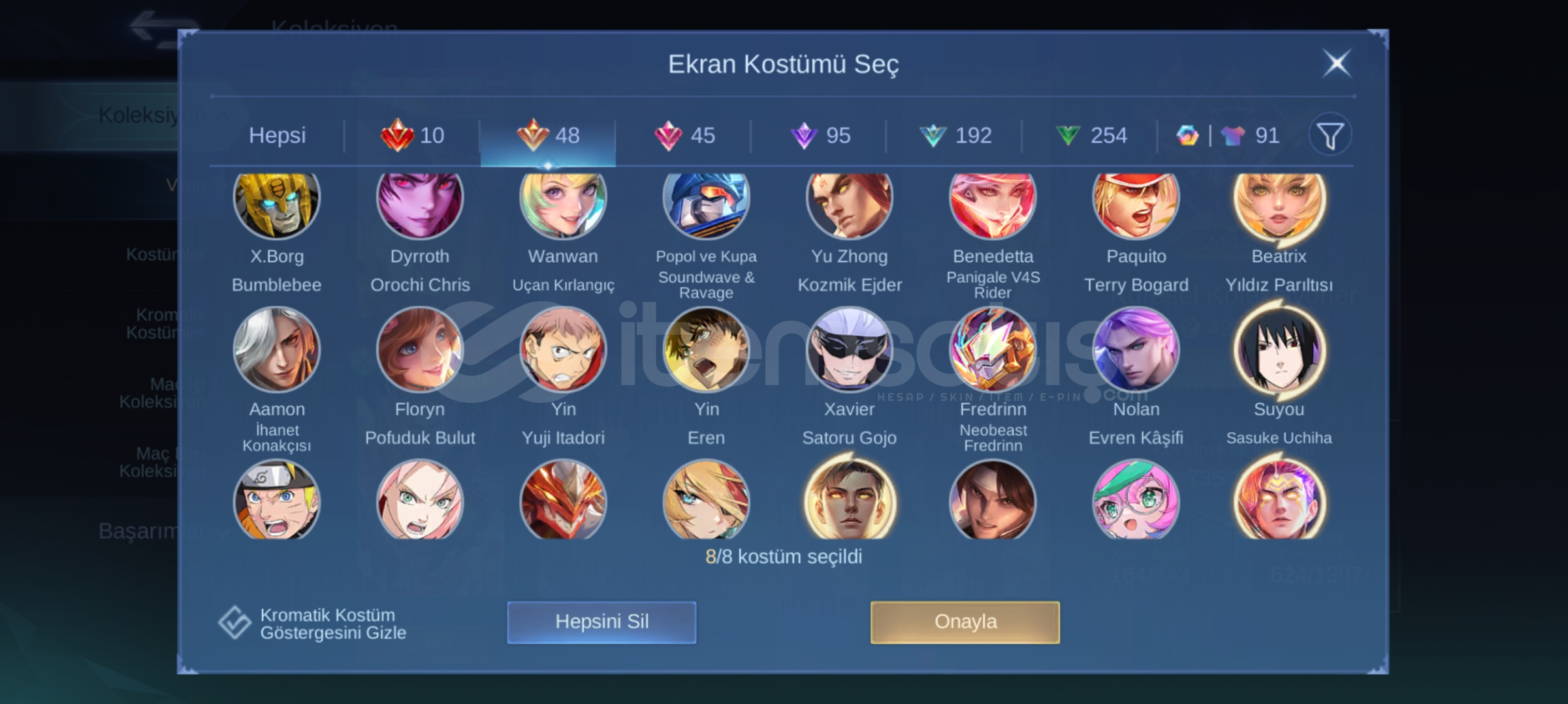 SATILIK GUS KOF VE CHOU KOF, 11. LEGENDE 95 PARÇA KALMIŞ, ZODİAC FULL, KÜRESEL 24K SIRALAMAYA SAHİP, ORTA ORANLI, MAXİ 113 YILDIZ, HYLOS TR TAGI MEVCUT, 735 KOSTÜMLÜ, ÇİFT EPİK BASELİ, NARUTO YÜKLENME EFEKTİ İLE BİRÇOK İŞBİRLİĞİ COLLECTOR VE LUCKYBOX KOSTÜMLERİ MEVCUT🔥