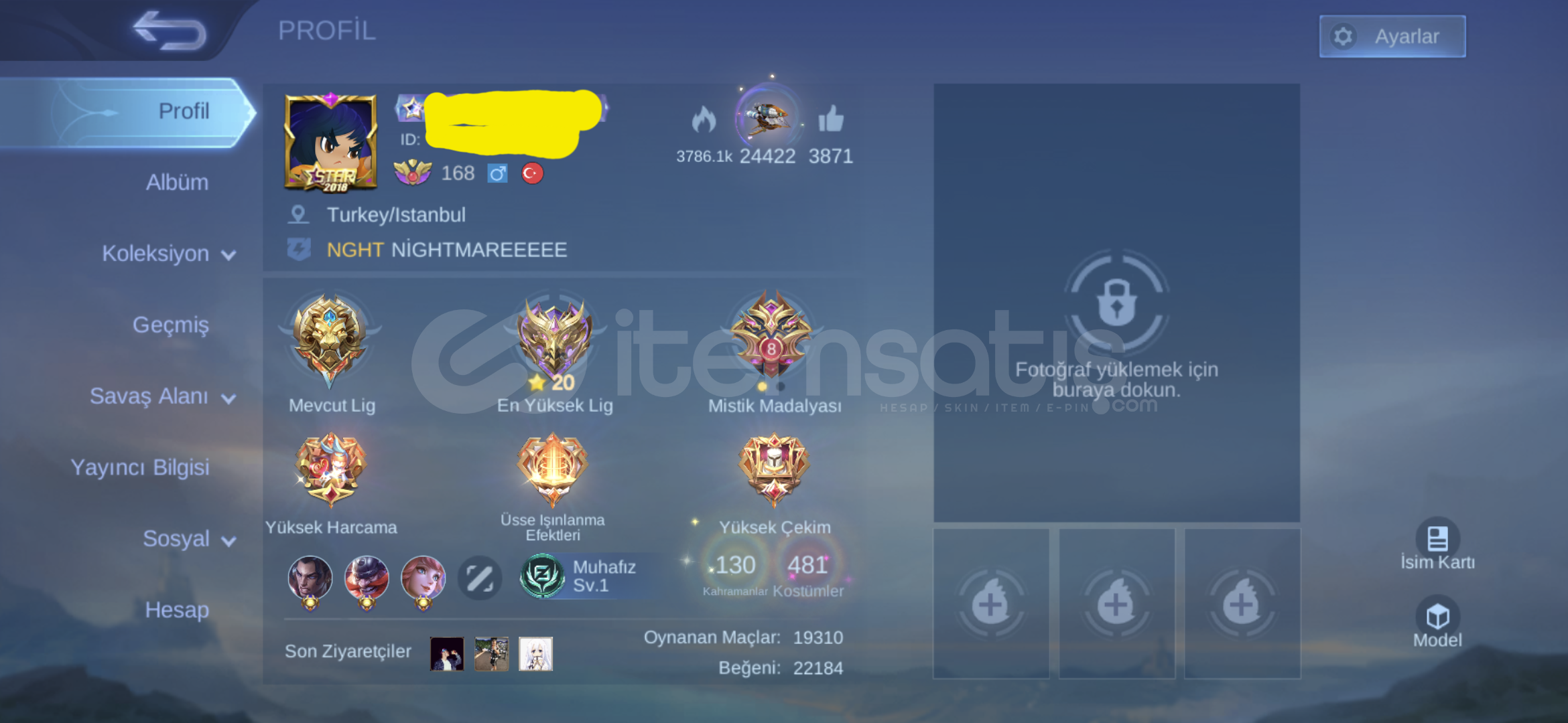 Dolandırıcı değilim kardeşim , fiyatını ödeyip gönül rahatlığı ile oynayabileceğin bir hesap , benim için bu hesabın değeri budur . 3 kuruşa aldığın hesaplar 2 gün sonra elinden gidince viiyyy viyyyy deyip ağlama gelll benim hesabı al paşalar gibi rahatça oyna Detay için msj atman yeterli dostlar çok yazan oluyor oyun içinde abi şu fiyat olur mu bu fiyata olur mu diye o yüzden isim yerini kapattım site dışında alışveriş düşünmüyorum iki tarafın güvenliği için de en iyisi site içi alışveriş ayrıca zaten karizma puanı 15 20 bin ti ediyor yani ne indirimi yapayım bu hesaba alacaksan al ben oyunu birakicam diye bu fiyat. Yoksa bulamazsın tek sahibiyim hesabın