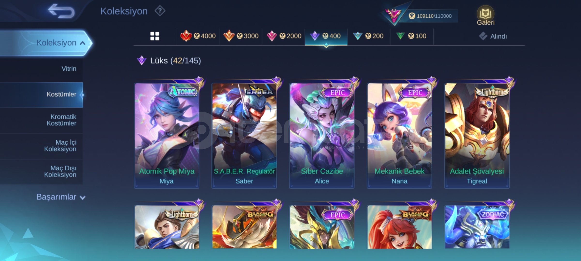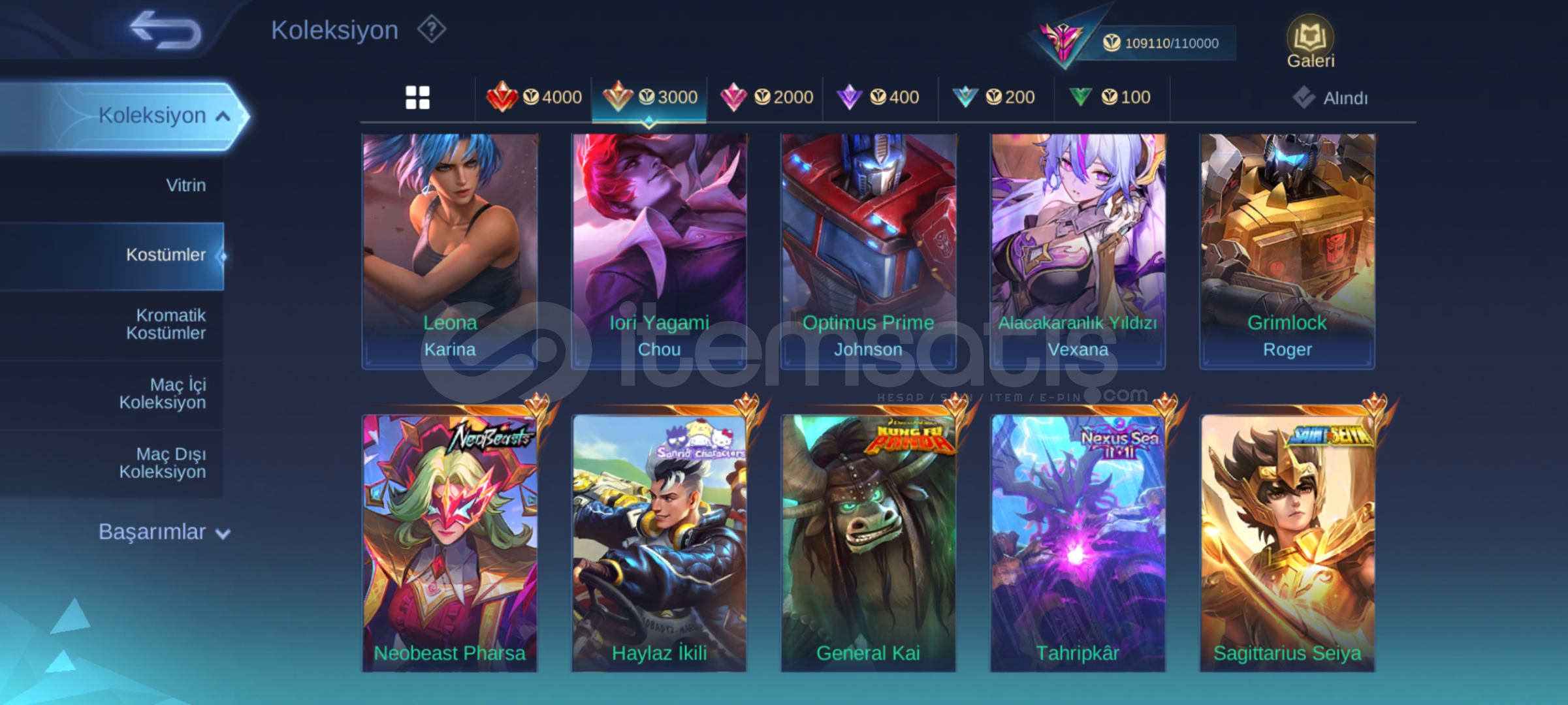 Hesapta bütün kahramanlar mevcuttur .