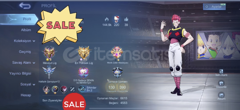 Moonton Girişi Temiz HesapSaygın Koleksiyoner 4Hxh cecilion Legend John11.11 X.Borg DOLU HESAP