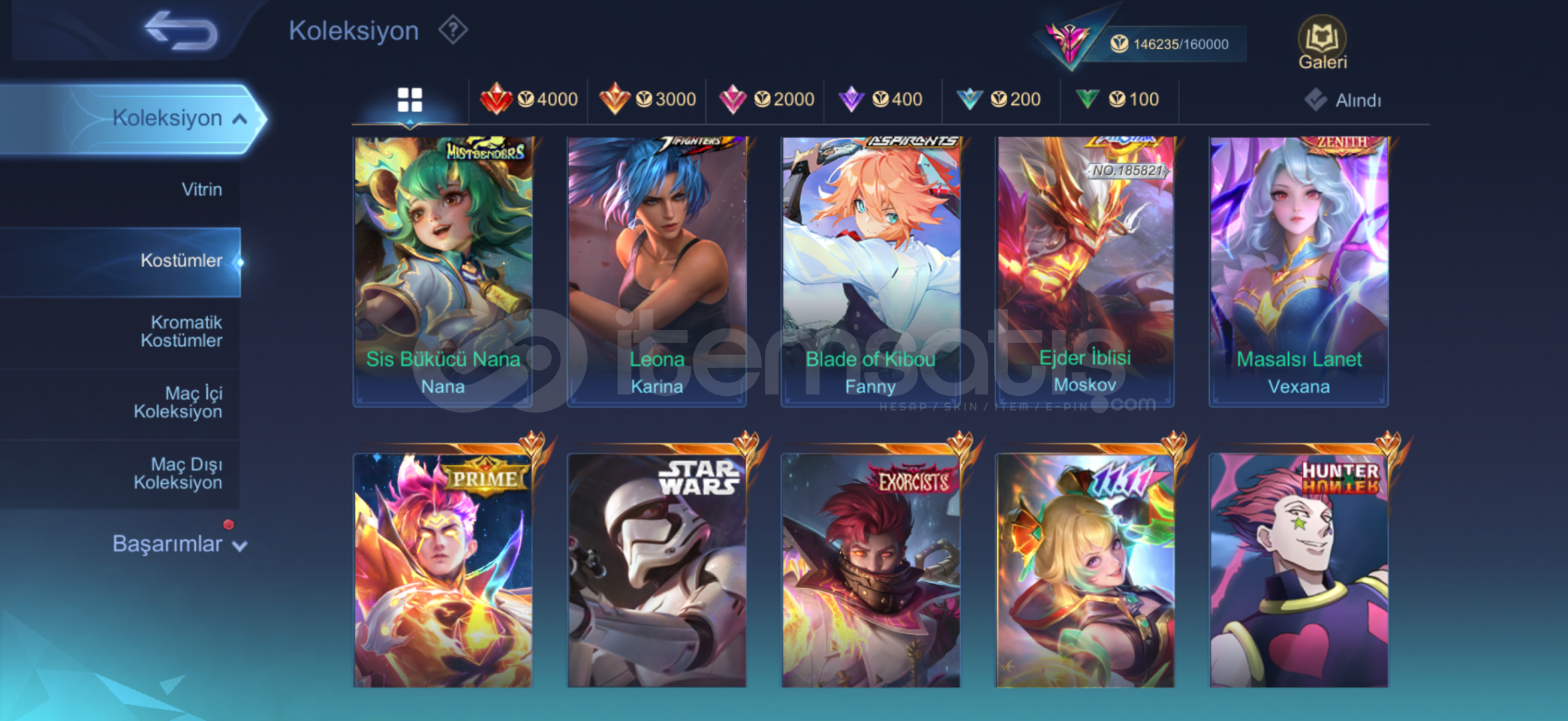 Bilgiler :Saygın kolleksyonerdir hesapta 395 köstüm mevcutturdeğerli köstümleri mevcuttur naruto vs gibi kostumleri var....