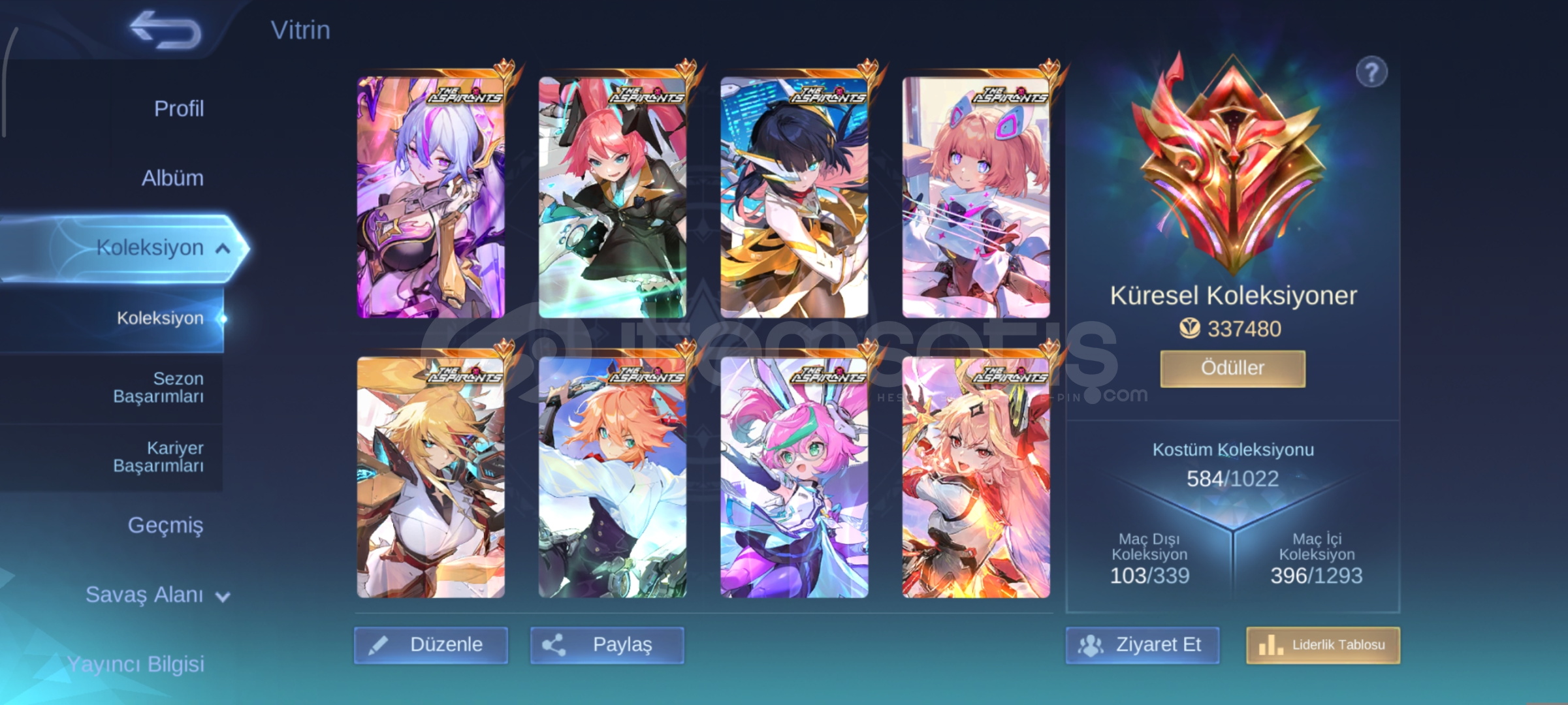 SMURF KÜRESEL KIZ HESABI Legend Seckin Collector Luckybox bir çok değerli kostüm mevcuttur.Epic baselerSohbet baloncuğu 600 civari elmas(aamon collector için kullanilmaya devam edilecek)Cerceve ve diğer şeyler fazlaca vardır.Cok az maçı vardır böylelikle favoriler ve oranlar hızlıca değişiklik gosterebilir önü açık bir hesap. Detaylar YouTube videosunda...https://youtu.be/aT...