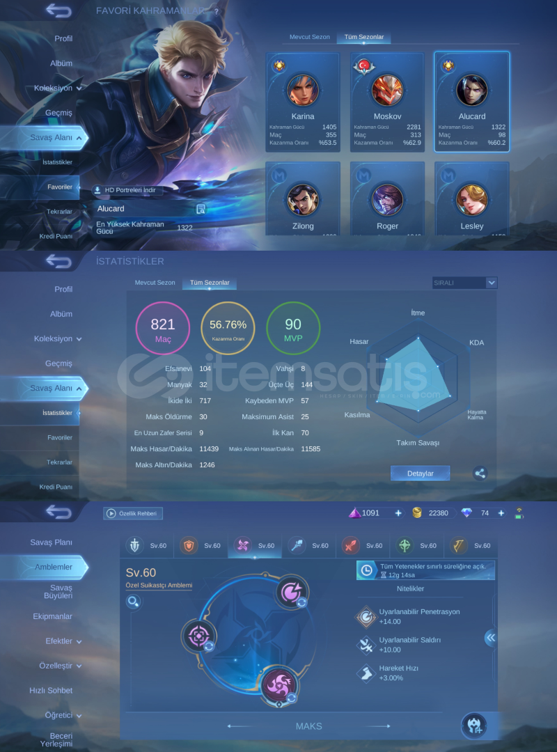 117 Hero Full Amblem.3691 Yıldız Üyelik Parçası.Sadece moontona bağlı✔️Mail değişimi aktif✔️Dekontlar mevcut✔️Maç sayısı az olduğu için oran rahat kasılır. İlk iki heronun maç sayısı 300'ler de geri kalan heroların maç sayıları çok az.Detaylar fotoğraflarda mevcut. Yine de sormak istediğiniz bir şey olurs...