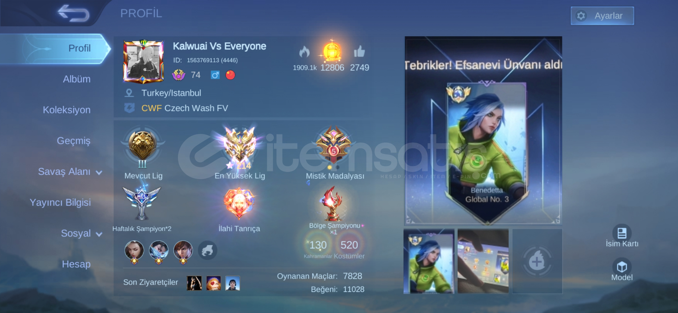 Meraba Emek Hesaptır 3 senelik içinde 10 legend olmak üzere 520 kostüm mevcuttur oranlı Hesaptır benedetta 2k maçı vardır