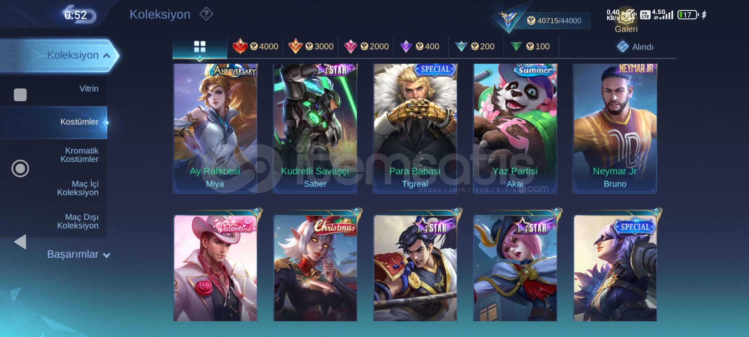 Tüm karakterler açık yeterince kostüm var mistik alıcıya hayırlı olsun