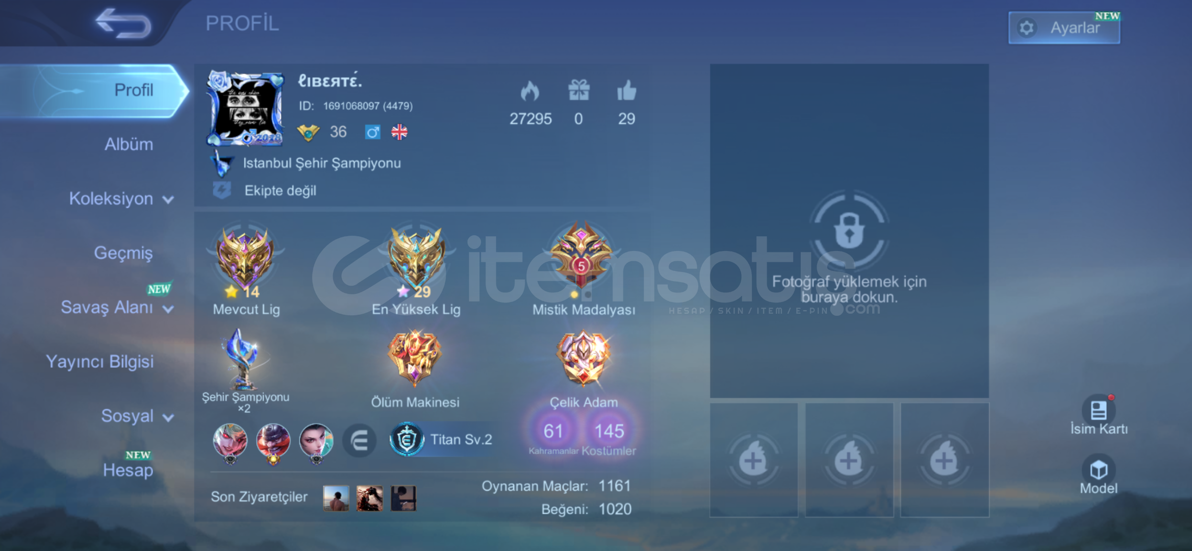 hesap mistik ligindedir fazlasıyla para yatırılmış bir hesaptır kostümleri bol boldur ihtiyacım oldugu için satıyorum PAZARLIK OLUR!