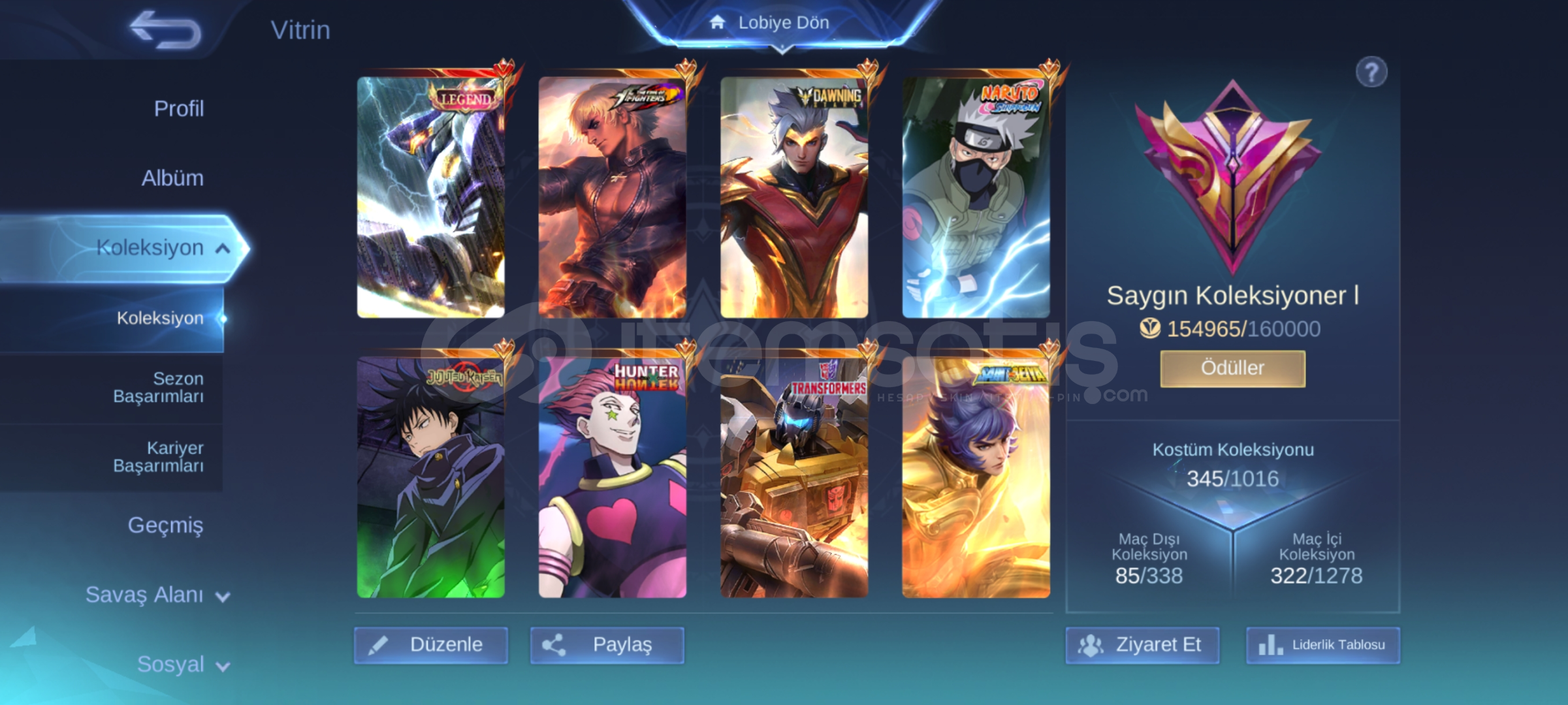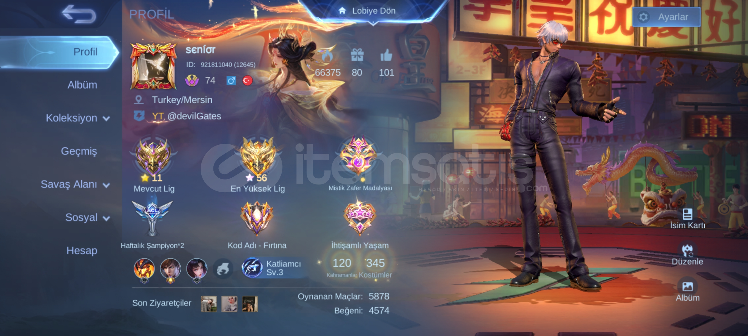 Hesabın detaylı videosu varHesapta kostümü olmayan çok az sayılı hero varMega koleksiyonere 2 epik kostüm kaldıAmblem Full Hero için içinde para var 4-5 hero eksikYıldız üyelik normali 01.10 da alındı.Mavi base var. E-spor Evos 8 gün deneme Kırmızı base 30 gün deneme