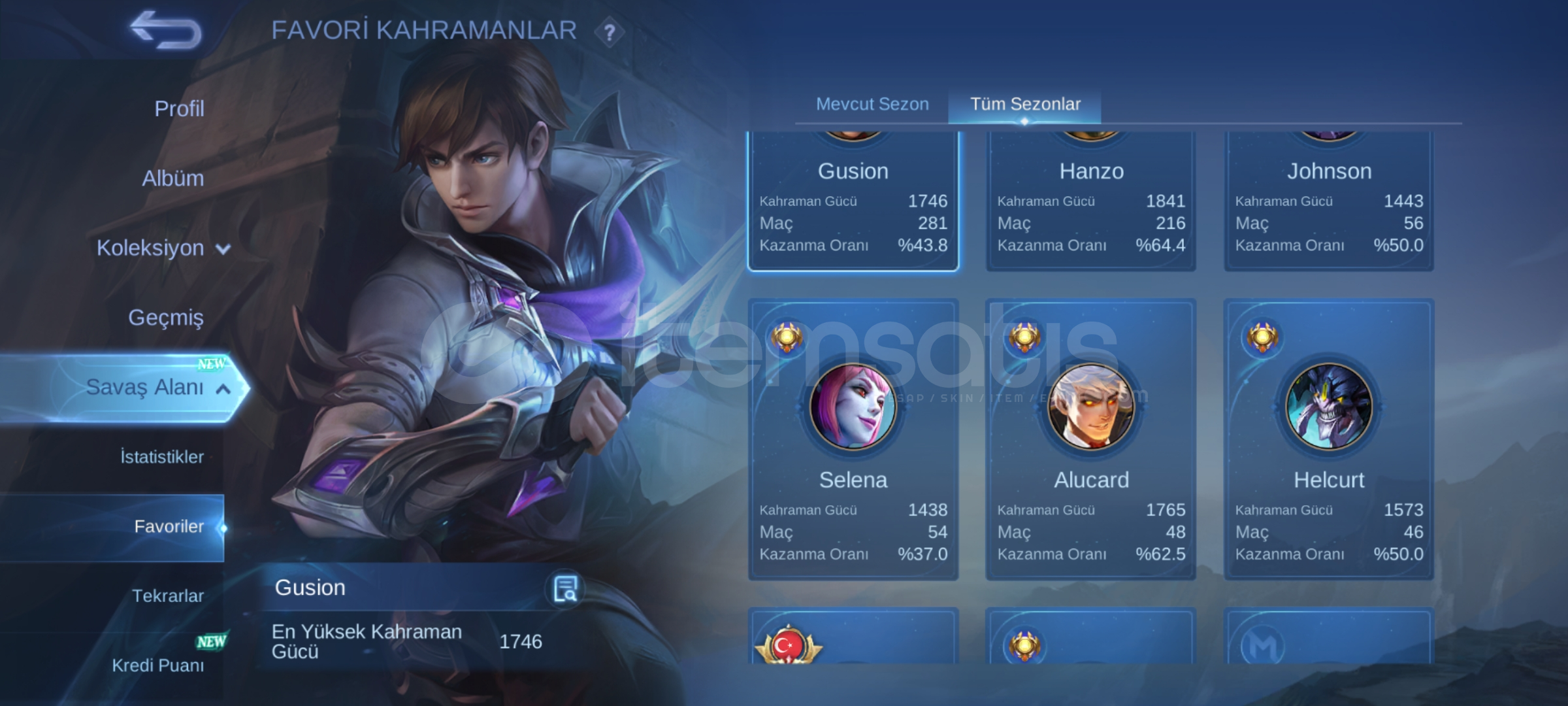 Hesapta gus ve hanzo oynanmıştır,genellikle hesabın içinde aspirant çerçevesi,KO öldürme efekti ve eski üsse ışınlanmalar mevcuttur m3 gibi fanny maçı azdır ve istiyen hesabi fanny main yapabilir