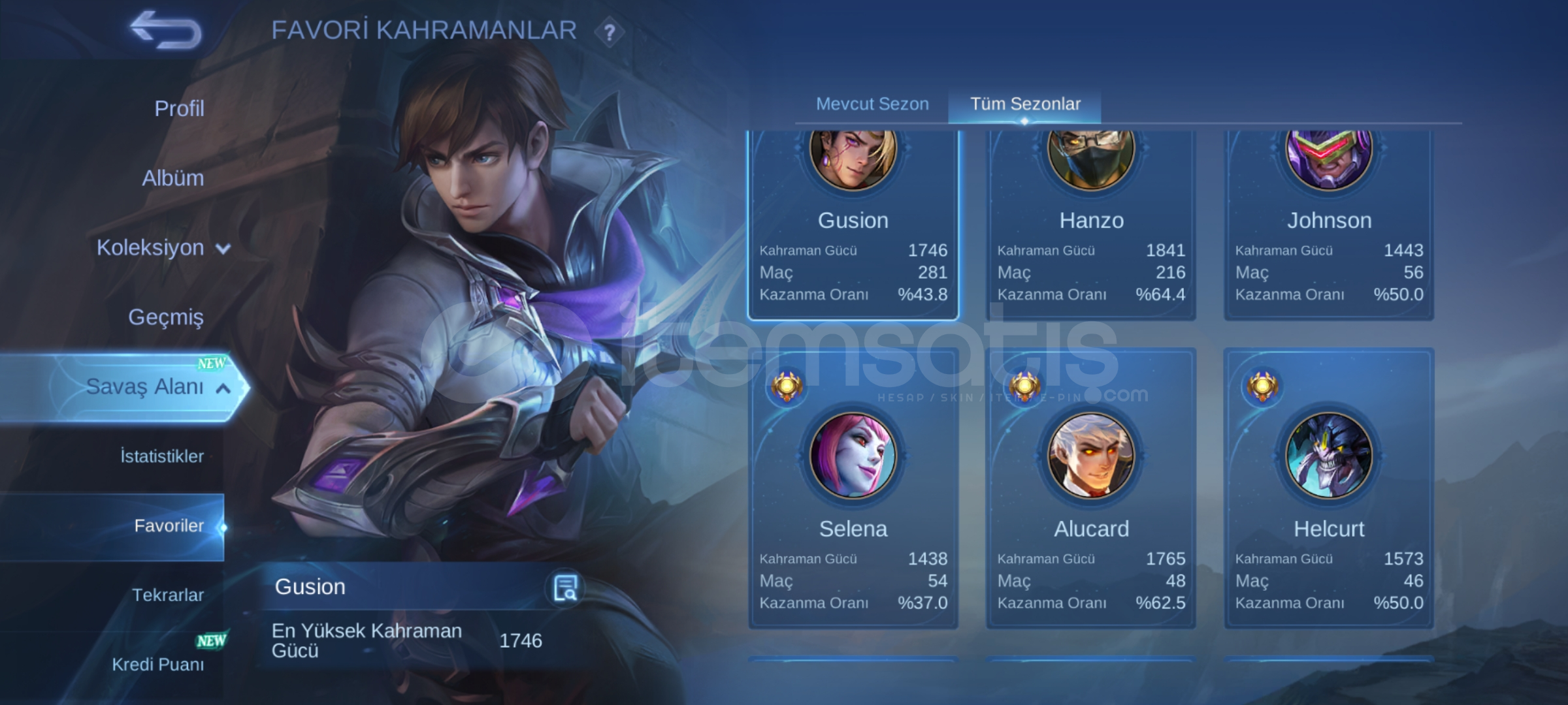 Hesapta gus ve hanzo oynanmıştır,genellikle hesabın içinde aspirant çerçevesi,KO öldürme efekti ve eski üsse ışınlanmalar mevcuttur m3 gibi fanny maçı azdır ve istiyen hesabi fanny main yapabilirKAGURA DA 3 KOSTÜM VARDIR VE 0 MAC KAGURADIRYSS 20 MAÇ 70 ORANDIR YSS MAIN YAPILABILIR HESAPTA 2 COOLLECTOR VARDIR Hesap devri gerçekleşecektir.