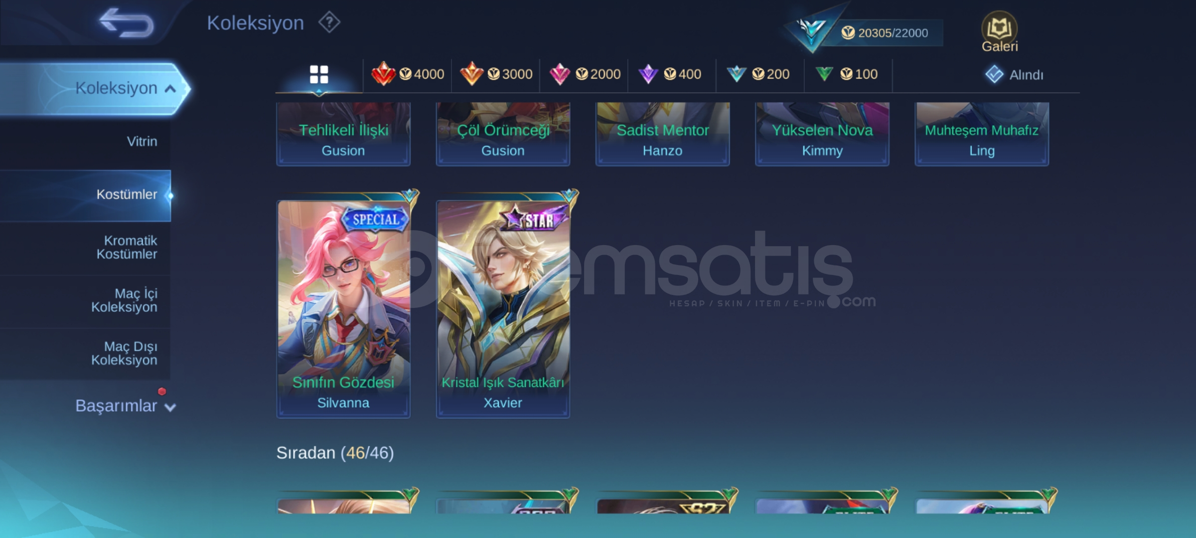 Hesapta gus ve hanzo oynanmıştır,genellikle hesabın içinde aspirant çerçevesi,KO öldürme efekti ve eski üsse ışınlanmalar mevcuttur m3 gibi fanny maçı azdır ve istiyen hesabi fanny main yapabilirKAGURA DA 3 KOSTÜM VARDIR VE 0 MAC KAGURADIRYSS 20 MAÇ 70 ORANDIR YSS MAIN YAPILABILIR HESAPTA 2 COOLLECTOR VARDIR Hesap devri gerçekleşecektir