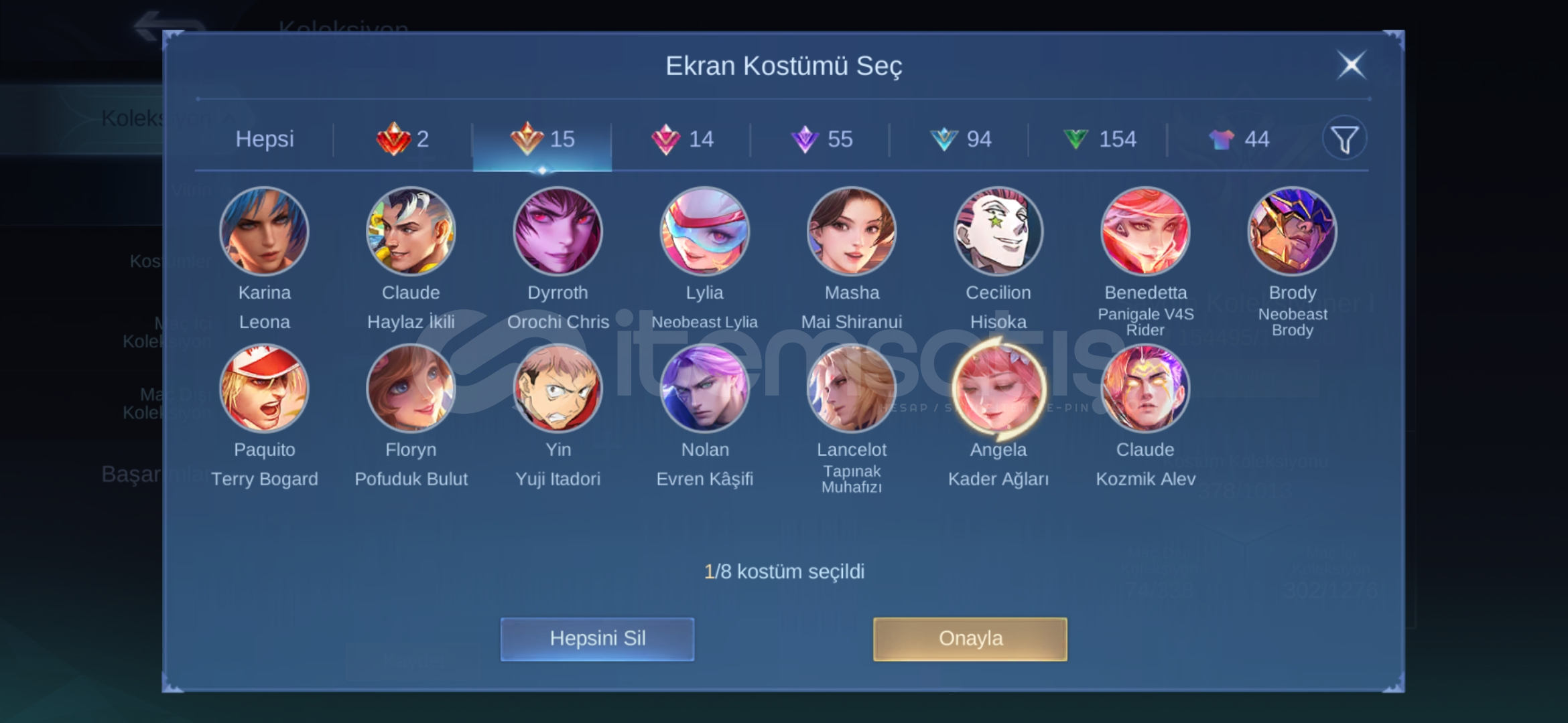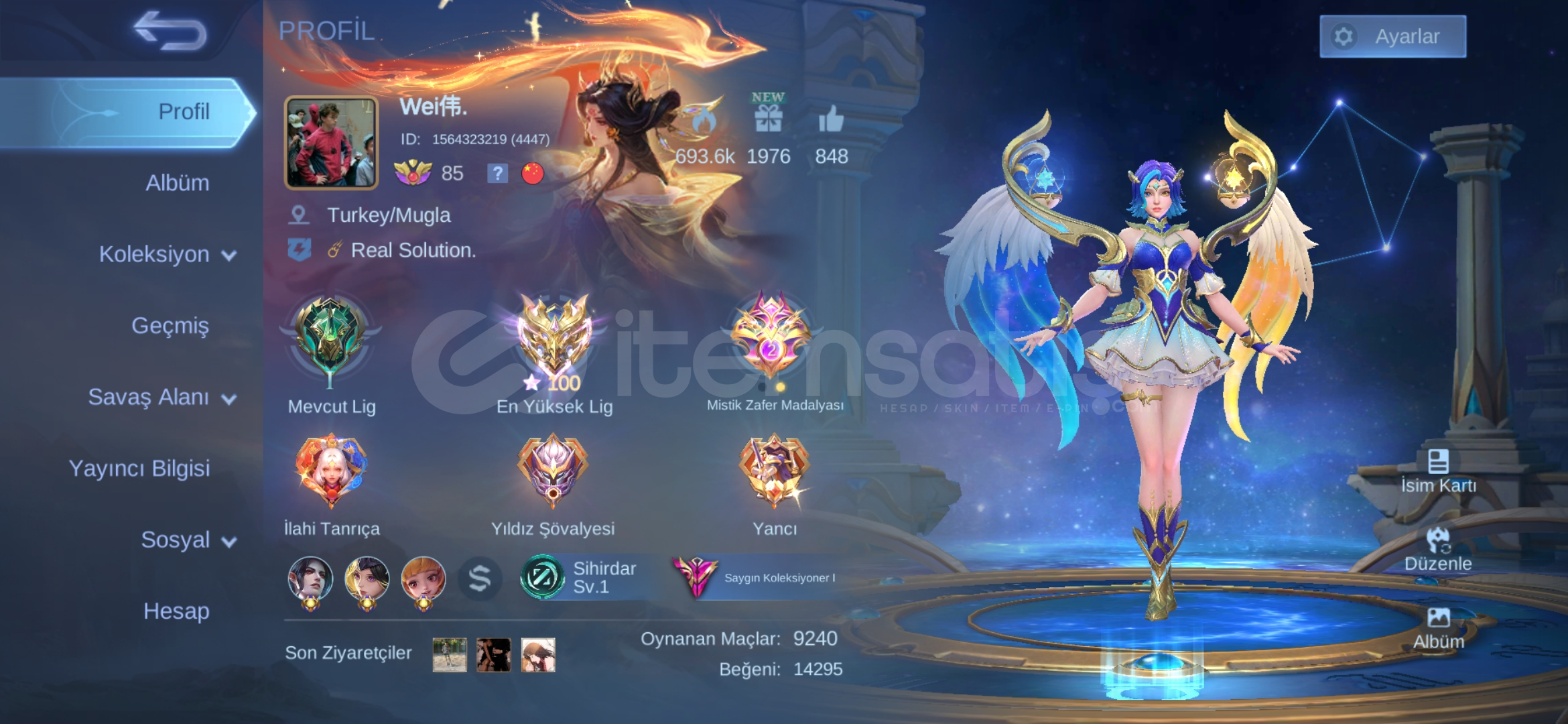 ortalama 70 80 oranlı. lunox, granger legend vardır 155 büyü taşı parçası var ve değerli epik olarak alice epik ve vexana epik var. 2 zodiac kostümü var lunox, odette ve son olarak sadece 25 tane tane hero eksik sadece