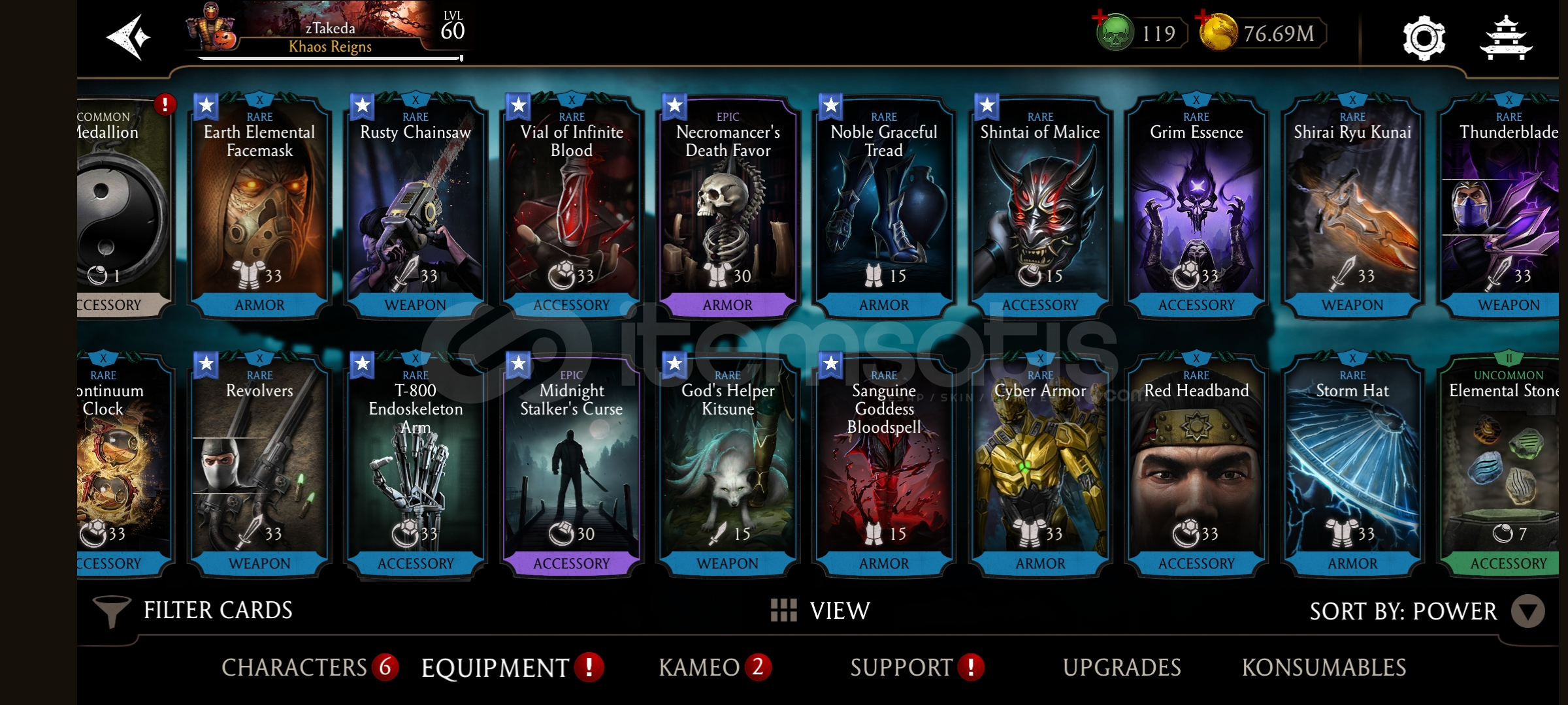 Başlangıç için oyunun en güçlü karakterleri mevcuttur. Ekipmanlar da çok işinize yarayacaktır.