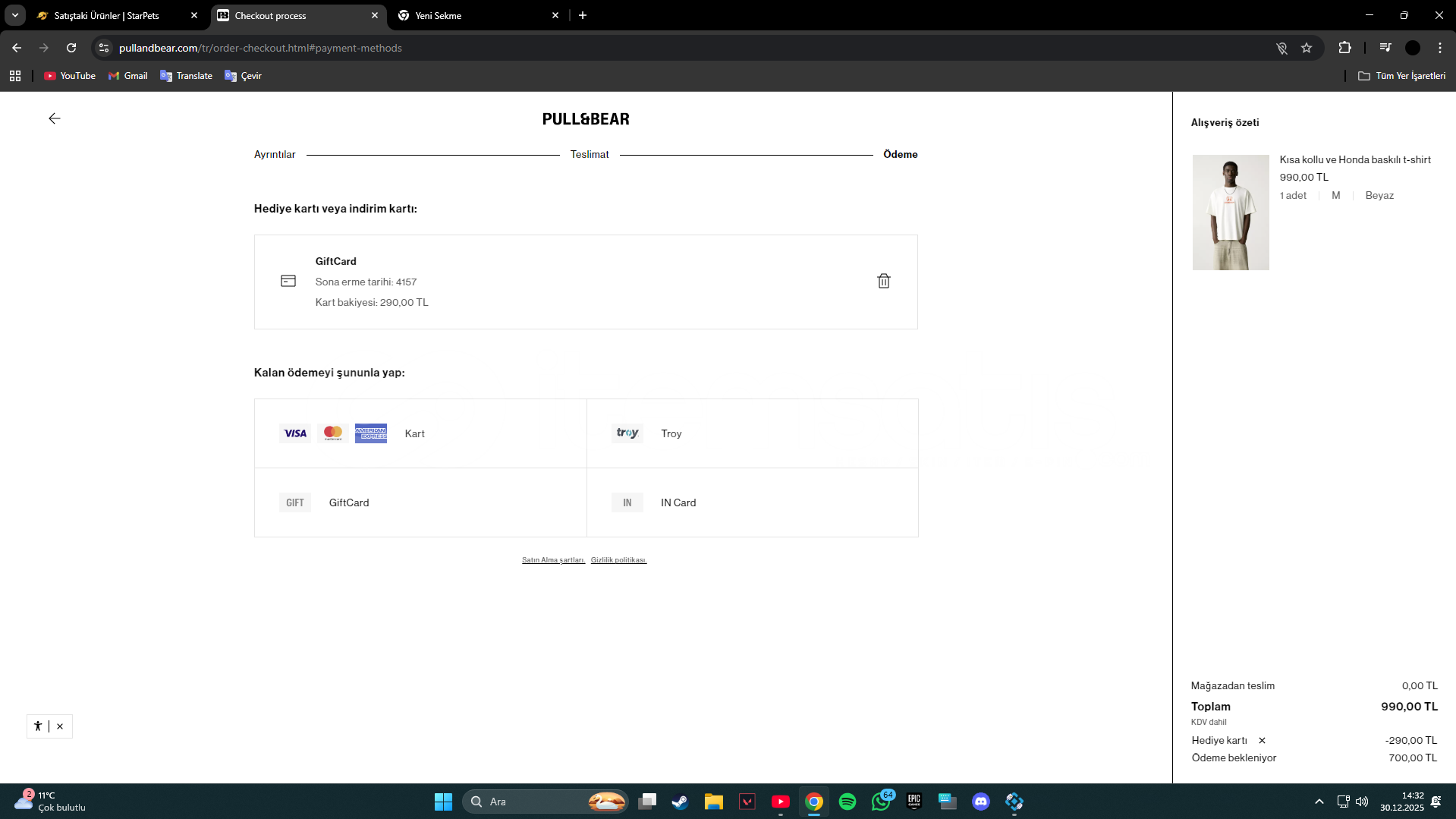 PULL BEAR ZARA BERSHKA 290 LİRA BAKİYE KARTI