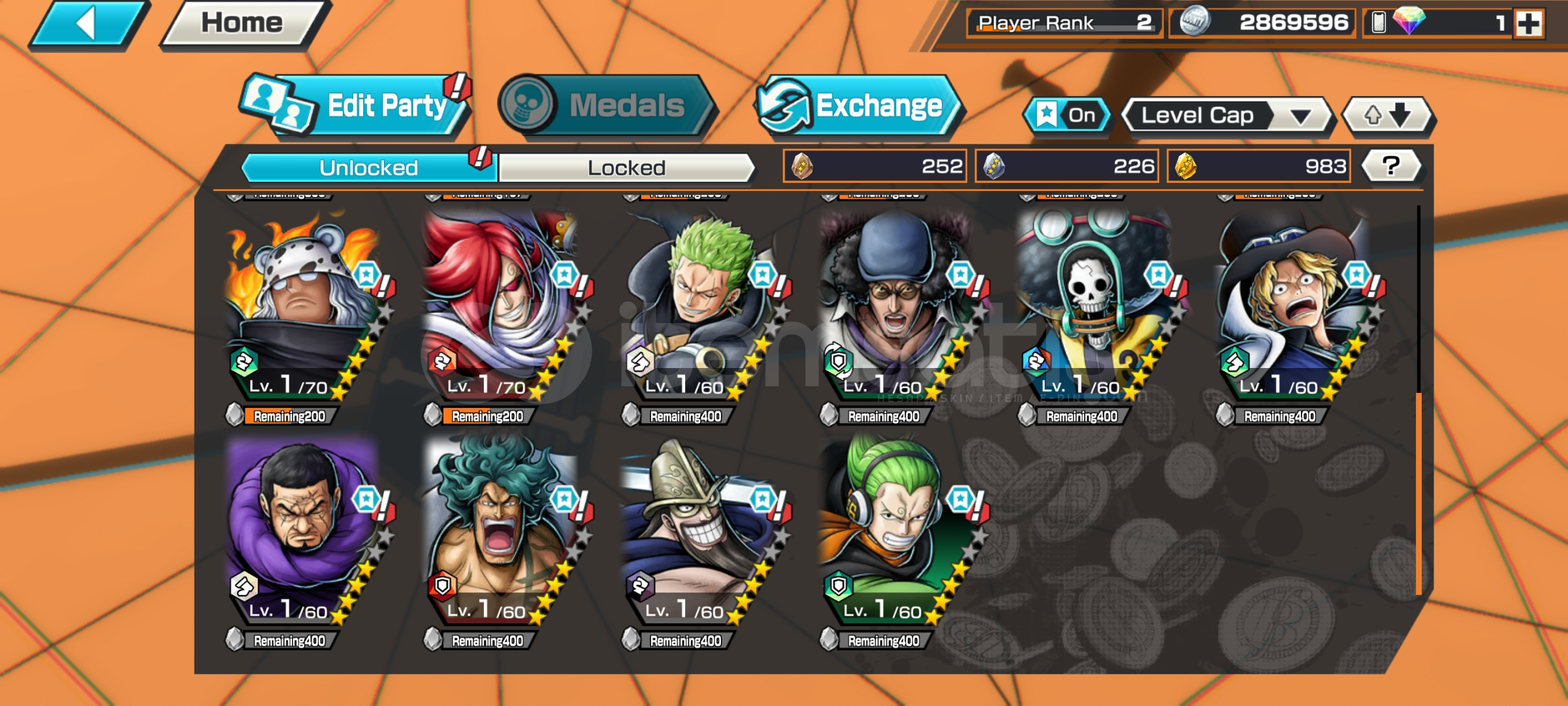 Hesap yeni başlama hesapı ve çok güzel ve yeni Kahramanlar var hesaptaki exlerThe Four Emperors Monkey D. Luffy Level:70Black Pirates Kuzan Aukiji Level:60Flame Emperor Sabo Level:60Alıcısına şimdiden hayırlı olsun