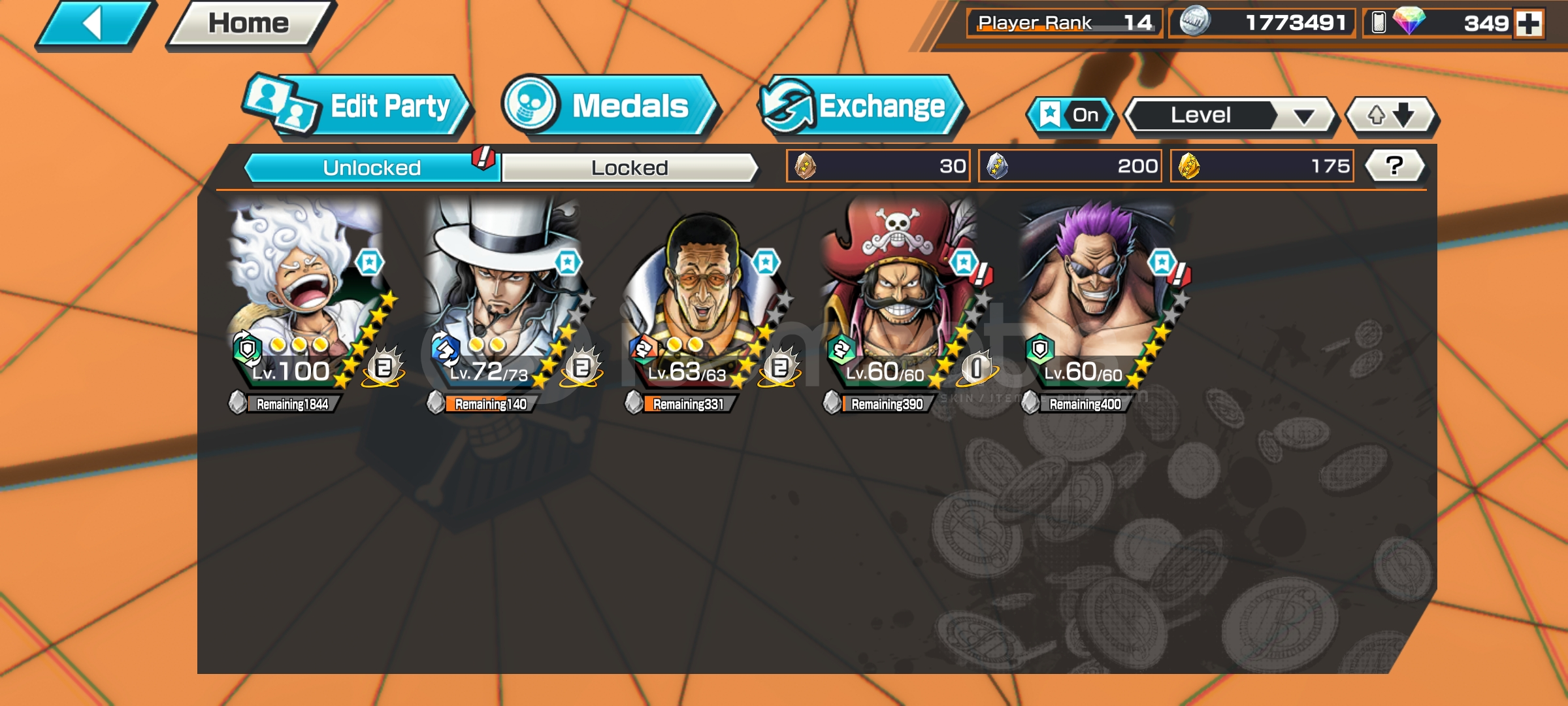 5 ex karakter bulunmaktaKİZARU 80 seviye olduLUFFY GREENLUCCİRoger greenZephrKuzan ( yeni aldım )Uygun madalyalar bulunurİsteyenler için aktif durumun görsellerini paylaşırım