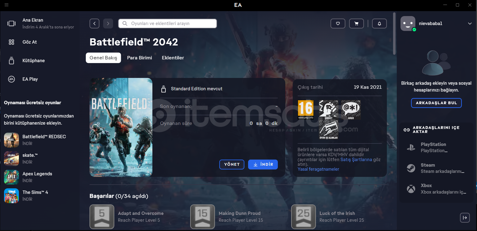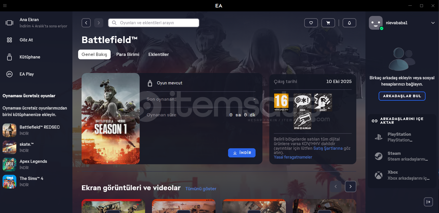 •EA hesabı içinde Battlefield 2042 ve Battlefield 6 bulunmaktadır.