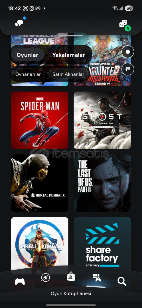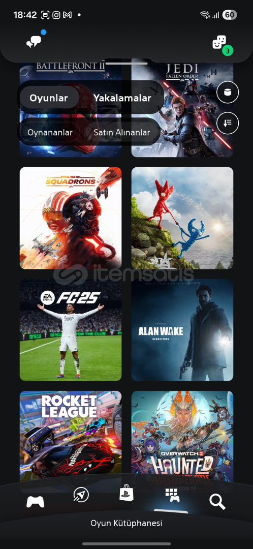 PSN Hesabım satılıktır. İçerisindeki oyunlar sağlam oyunlardır. Ps seviyorsanız garanti oynarsınız.İçindeki oyunlar şu şekilde;● Last Of Us Part 2 Remastered● NBA 2K25● God of War● Cyberpunk 2077 Ultimate Edition● Red Dead Redemption 2 Ultimate Edition● Witcher 3● Fc25● Uncharted The Nathan Drake Collection● Marvel Spiderman ...