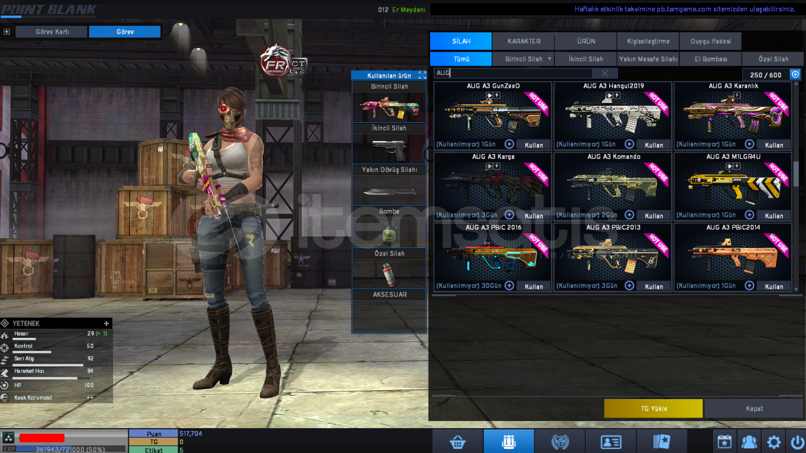 • 30 Günden fazla AUG,Kriss gibi silahlar mevcuttur. Adetli aug cadı oa cadı mevcuttur.