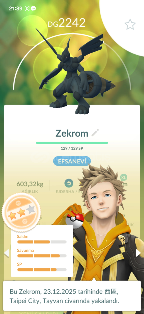 Lv 20-25 arasıDg 2300-2200Parlak değildirDeğişimden sonra özellikler değişiklik gösterebilir.zekrom pokedex kayıtlıysa 20k değilse 1m yıldız. gereklidir