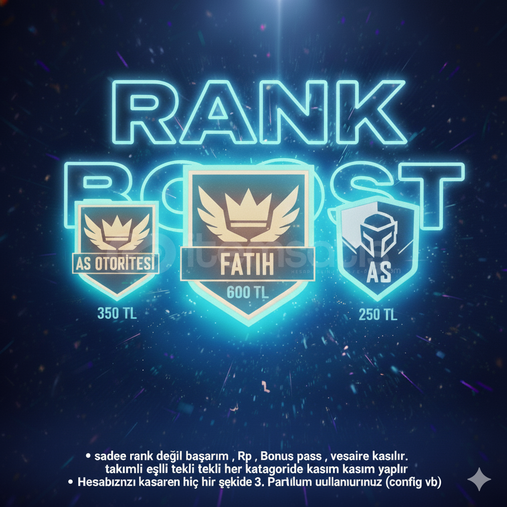 •sadece rank değil başarım , Rp , Bonus pass , vesaire kasılır .•takımlı eşli tekli her katagoride kasım yapılır•Hesabınızı kasarken hiç bir şekilde 3. Parti yazılım kullanmıyoruz (config vb)