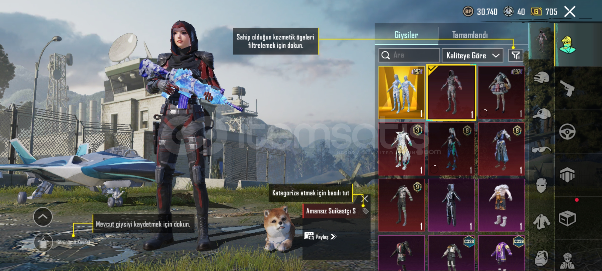 ruh yiyen seti-- yer altı m416--14destansı--dolar seti--arkadaşların hepsi sildim--1uc--isim değiştirme--50seviye--4000tlolma sebebi nadir olması--yoldaş köpek--küçük midilli--bu kadar en önemli olanları koydum-- alırsanız sevinirim