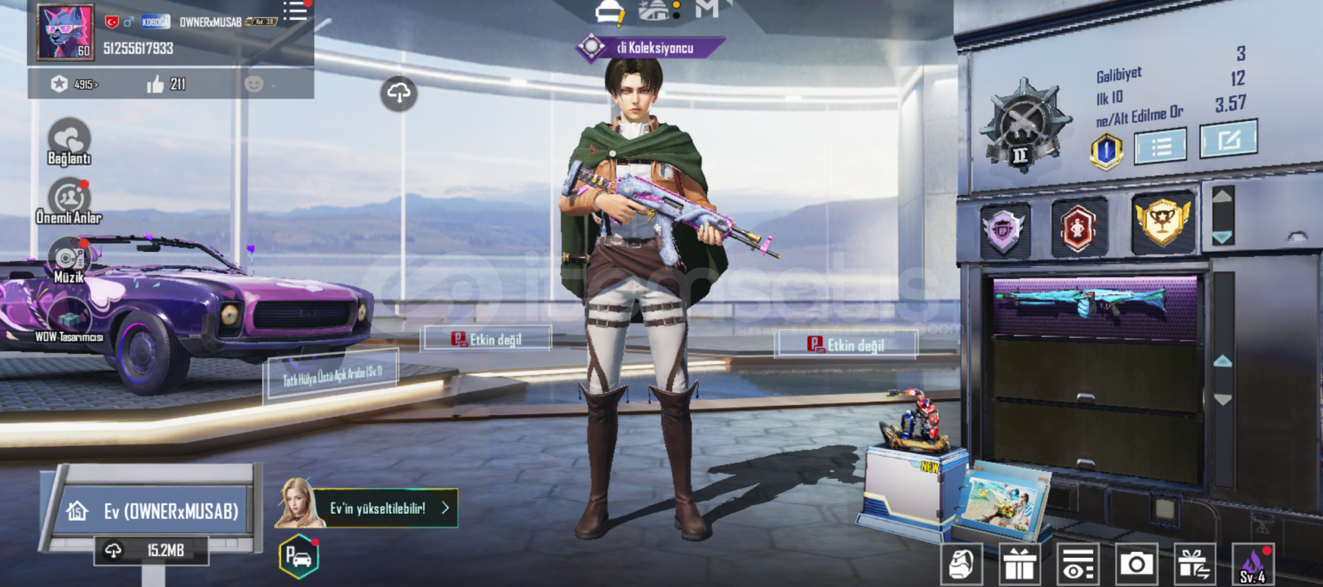 Hesapta=3 tane yükseltilebilir araba toplam 9 araba 12 destansı set vardır saha komutan seti full dür 6+yükseltilebilir silah vardırOyunu bırakdiğım için satiyom