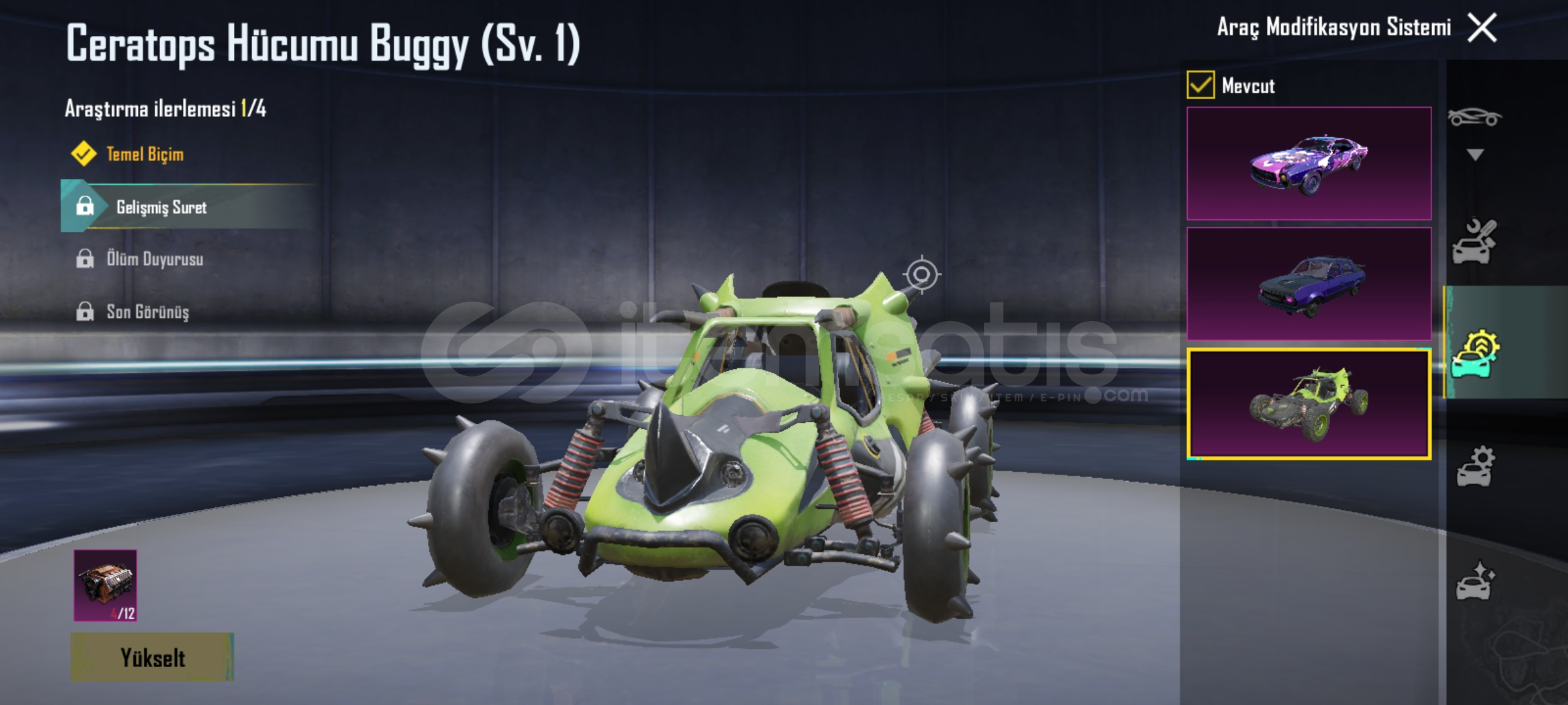 Hesapta=3 tane yükseltilebilir araba toplam 9 araba 12 destansı set vardır saha komutan seti full dür 6+yükseltilebilir silah vardır