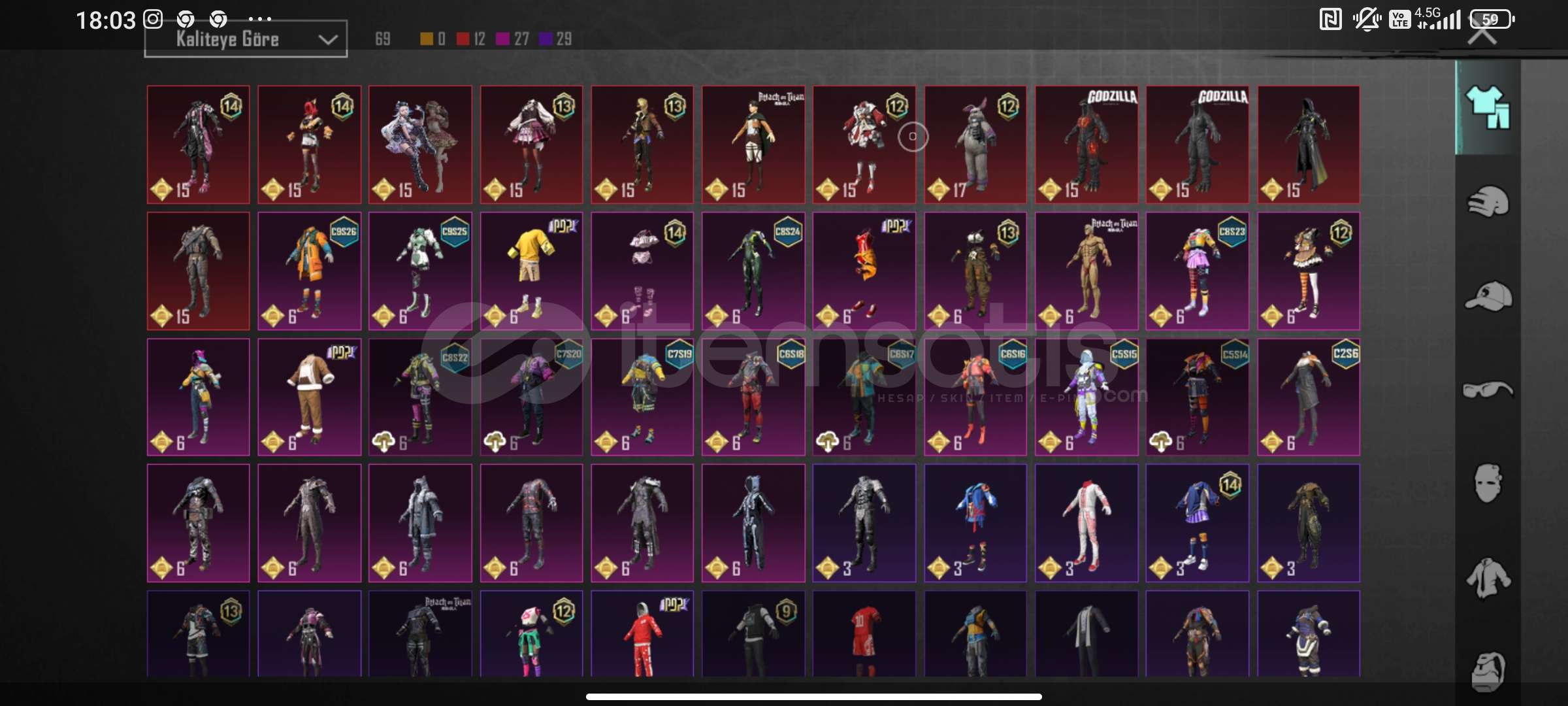 Hesapta=3 tane yükseltilebilir araba toplam 9 araba 12 destansı set vardır saha komutan seti full dür 6+yükseltilebilir silah...