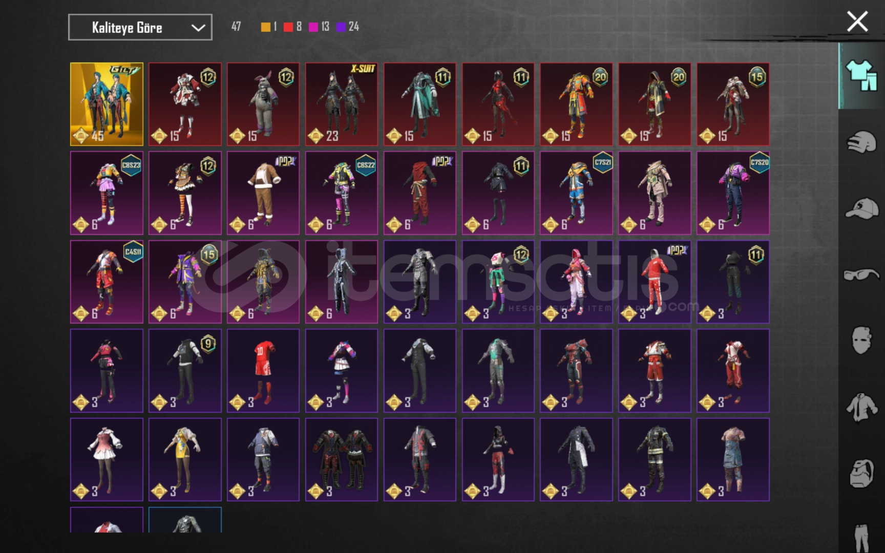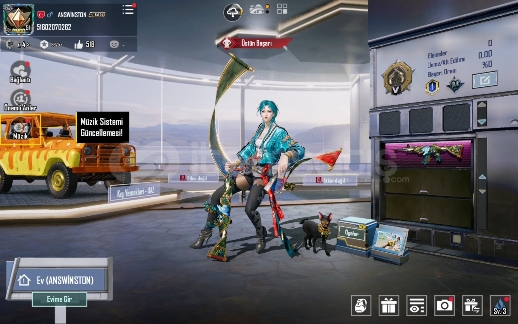 2 adet özel öldürme efektli Molotof1 adet özel öldürme efektli bomba ve normal 3 adet daha bomba var5 adet sis bombası2 flaş bombası2 adet uçakadet sarkacı planörüFiravun paraşütü6 adet destansı dans ve daha dolu nadir olan danslarKış yemekleri uazYakan kükreme çantaMaskara çantaDestansı kaskToplam 7 adet yükseltilebilir silahYakan kükreme m416 5 seviye4 adet 7 g&uum...