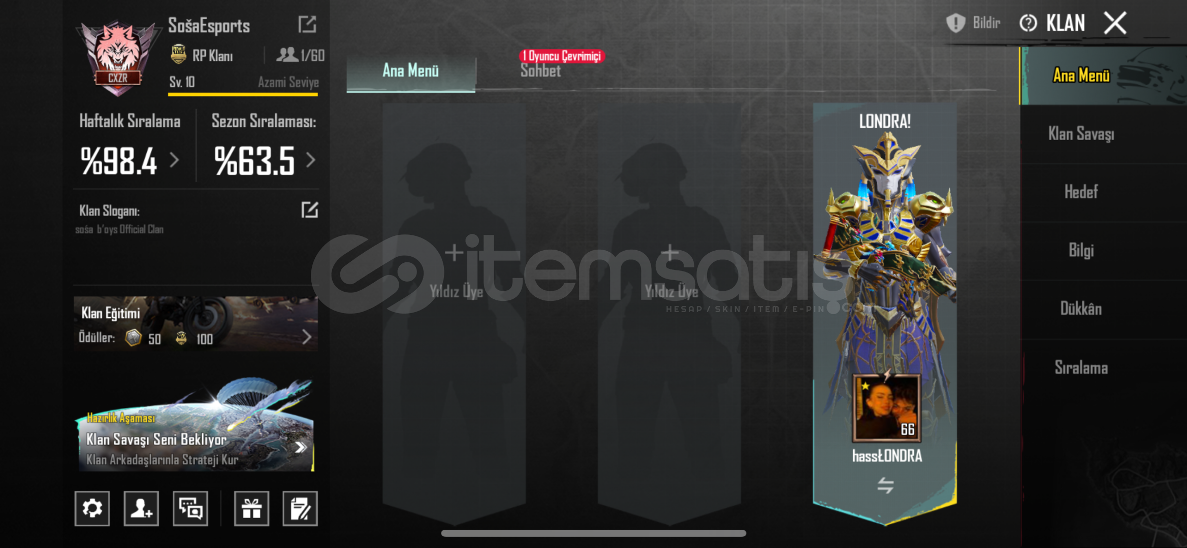 SİTEDE OLMASAM BİLE SATIN ALABİLİRSİNİZ İD İLETMENİZ YETERLİDİR ONAYLI MAĞAZA GÜVENCESİ İLE HIZLI TESLİMAT ALICISINA HAYIRLI UĞURLU OLSUN İSİM DEĞİŞTİRME MEVCUT İSTEDİĞİNİZ İSMİ KOYABİLİM KLANA