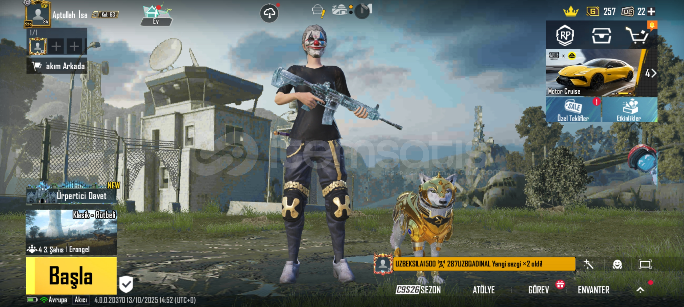 Siyah Forma(Nadir)!TEK BAĞ!25 Yüksetebilir(Silah Deseni)Koleksiyon 6316 Sezon Fatih ÇerceveliYoldaşlar +Kutup Kurdu+Güvercin84 SeviyeYazamadıgım Çokca Detay5156969289 IDFiyatta Fazla Pazarlık Payı Yoktur